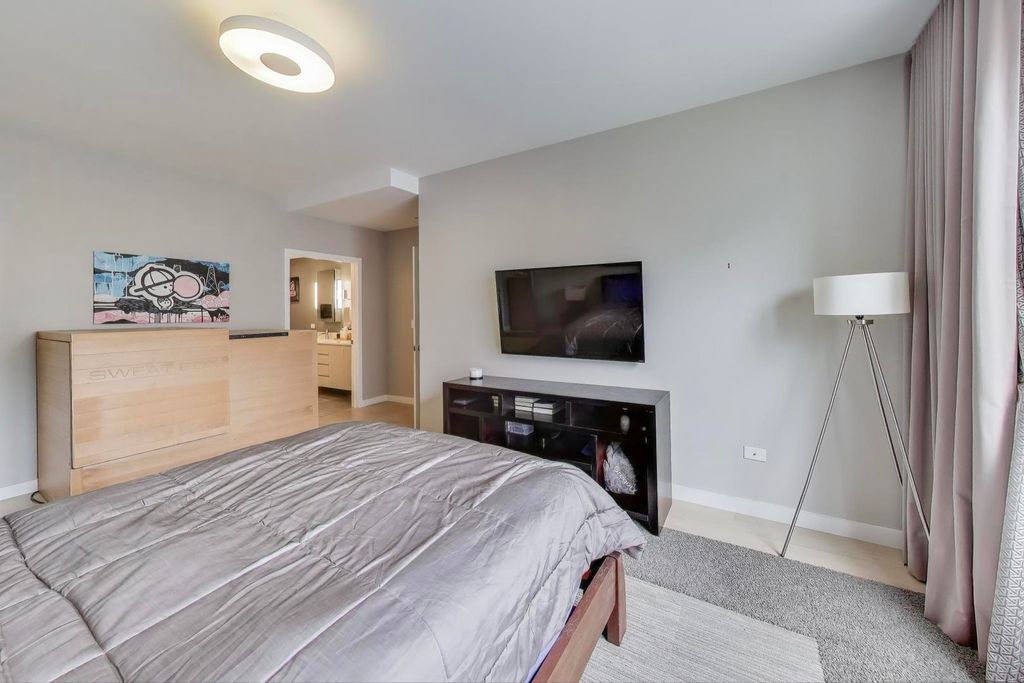 Discover unparalleled design and comfort in this 3-bedroom, 2-bathroom home, where every detail has been carefully curated. White oak hardwood floors flow throughout, leading into a living area anchored by bay windows that bathe the interior with natural light. Custom window treatments with sound-reducing inserts create a serene retreat, while a private balcony offers sweeping city views. The kitchen is a chef's dream, outfitted with custom Italian cabinetry featuring touch-to-open and soft-close technology, quartz waterfall counters, Wolf & Sub-Zero appliances, a large pantry with swing-out shelves, and a 154-bottle dual-zone wine fridge. The corresponding custom Italian built-in entertainment center completes this open-concept space. The primary suite is a true sanctuary, with abundant sunlight and an expansive walk-in closet with a custom storage system. Rejuvenate in your ensuite with a therapeutic Japanese soaking tub crafted from genuine Hinoki wood, framed by a tranquil tile accent wall, or refresh in the luxurious multi-head shower with bench seating. A double quartz vanity rounds out this spa-like retreat. Two additional bedrooms provide flexibility for family, guests, or a home office. The second bathroom impresses with quartz countertops, curbless shower, and bespoke cabinetry. Building amenities include a fitness center, a sunlit mezzanine patio, secure video entry, secure package room, and on-site maintenance. Nestled in River West, this home places you steps from Fulton Market's dining scene and neighborhood favorites like La Scarola and Piccolo Sogno, coffee shops, fitness studios, Whole Foods, the Blue Line, and quick access to 90/94. A heated garage parking space comes with the unit for an additional $25k. Don't miss the opportunity to make this one-of-a-kind residence yours.