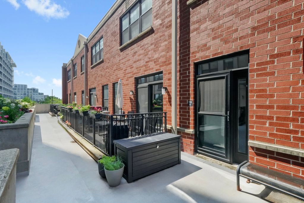 Enjoy the best of both worlds with this spacious townhome-style residence offering all the amenities and security of a high-rise building. With 3 bedrooms, 2.5 baths, and two private outdoor spaces, this home lives like a single-family, yet benefits from full-service building perks. Enter through the beautifully landscaped fourth-floor courtyard into a welcoming freshly tiled foyer with seating space and two oversized closets-perfect for coats and seasonal storage. The main level features dark oak hardwood floors and a fully renovated kitchen designed for both function and style. Highlights include quartz countertops, 48" birch cabinetry, textured tile backsplash, premium appliances (Thermador, Bosch, and more), chic pendant lighting, and a large island with butcher block top, built-in wine fridge, and custom eat-in dining table. The open-concept living room easily accommodates a large sectional and flows seamlessly onto the private patio, ideal for indoor-outdoor entertaining and grilling. Two essential updates add modern convenience: a main-level powder room and a walk-in pantry offering additional storage. Upstairs, the expansive primary suite fits a king bed with room for a sitting area and features a professionally organized walk-in closet and a brand-new en-suite bath. The spa-quality bathroom is equipped with a double quartz vanity, designer fixtures, custom lighting, fresh tile, and a curbless walk-in rain shower with integrated niche and seamless floor drain. A second spacious bedroom, updated guest bath, and full walk-in laundry room complete this level. On the top floor, you'll find new luxury vinyl plank flooring, and a versatile flex space-perfect as a third bedroom, home office, family room, or a combination of all three. This level opens to a sunny and supersized, south-facing rooftop deck for relaxing or entertaining outdoors. Unmatched value with HOA dues that cover nearly everything except electricity. What's included? Exterior maintenance (facade, roof, etc.), professional landscaping, water, gas, cable, internet, building insurance, 24-hour door staff, elevators, a fully equipped fitness center, meeting room, bike storage, large storage lockers, and on-site management and maintenance. Perfectly located in a well-maintained building with all the creature comforts and a highly functional layout- this is city living without compromise! One deeded garage parking space available for $25K additionally.