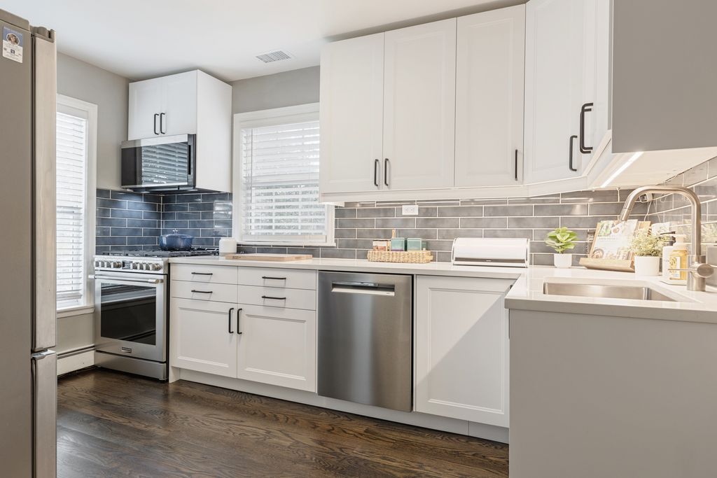 Welcome to this beautifully updated Cape Cod on a spacious corner lot in Brookfield! This charming brick home offers 3 bedrooms, 2 full baths, and a finished basement with flexible spaces ideal for an office, recreation area, or storage. One of the main-level bedrooms is currently being used as a dining room, adding versatility to the layout. Recent upgrades include a stamped-concrete patio, a new kitchen with custom cabinets, quartz countertops, a backsplash, and stainless steel appliances, including a Frigidaire gas range and Bosch dishwasher, plus hardwood flooring throughout the main level. Additional improvements feature updated plumbing, fresh paint, custom radiator covers, and enhanced landscaping with window planters on the side of the house, a couple of new trees, and paver planter gardens by the side door. The bright kitchen and open living areas are perfect for entertaining, while the large fenced yard offers outdoor space for relaxation and gatherings, and the detached 2-car garage provides added convenience and secure parking. Located near parks, schools, and the commuter train, this home combines classic character with modern updates. Move-in ready and waiting for you!