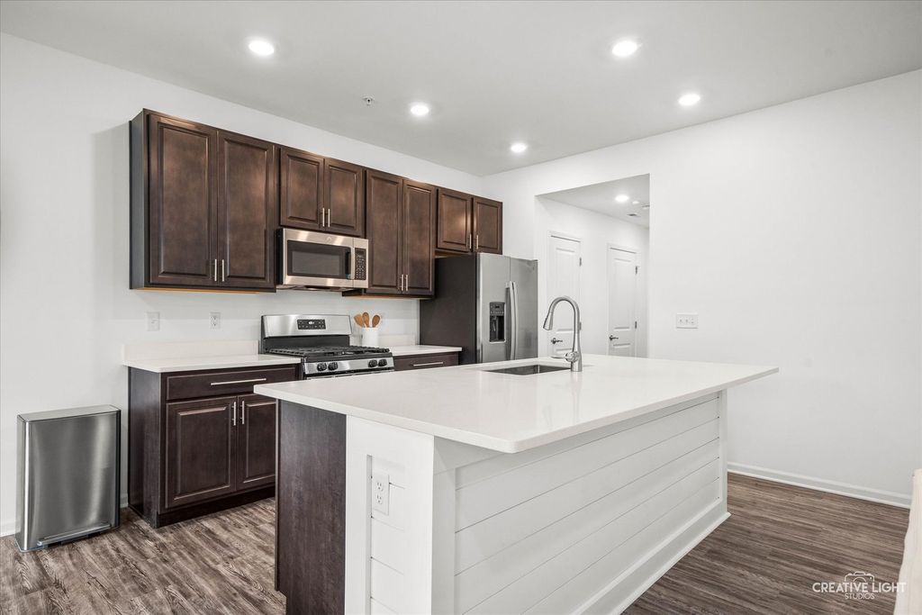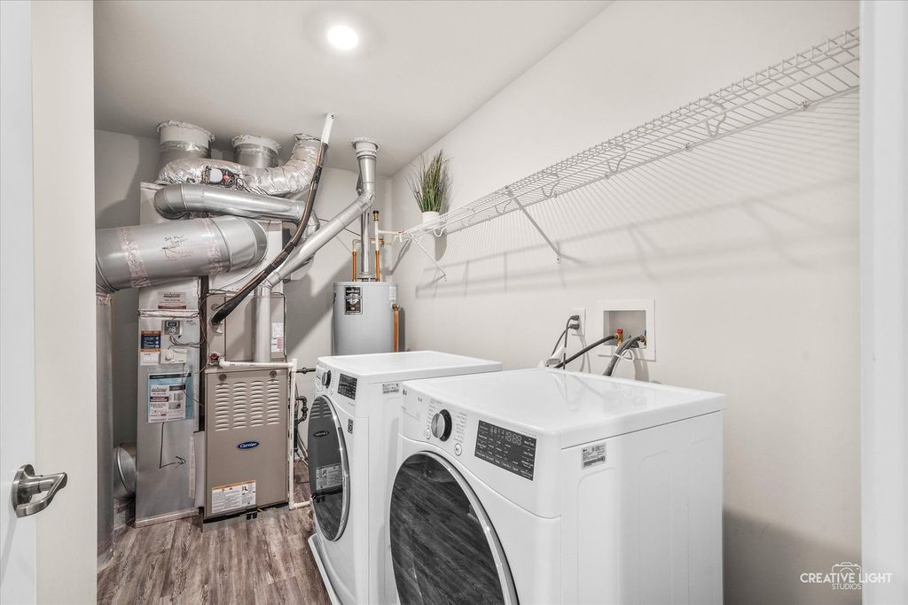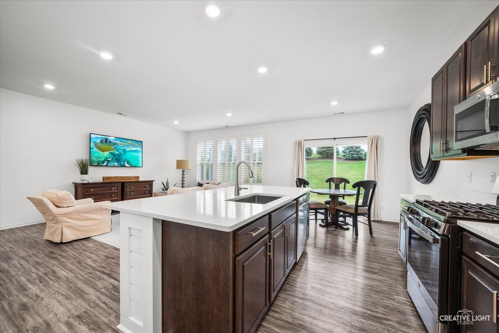 Better than new and crafted for effortless living, this stunning 3-bedroom, 2.5-bath townhome combines modern style with everyday comfort~every detail perfectly refined. From the moment you step inside, you'll feel the difference ~ this non-smoking, no-pet home has been impeccably maintained and offers a bright, open layout perfect for both relaxing and entertaining. The main level showcases wide-plank flooring, plantation shutters, and a gorgeous kitchen with quartz countertops, a large island, pantry, and stainless appliances. The newly added mudroom seamlessly combines form and function for enhanced organization. Upstairs, the primary suite boasts a custom walk-in closet and upgraded spa-like bath with dual sinks and a walk-in shower accented with natural light. Two additional bedrooms and a second full bath provide flexible space for guests or a home office. Enjoy tranquil green space views from your private patio, a 2-car finished garage, and low-maintenance living with HOA covering lawn care, snow removal, and exterior maintenance. Additional features include a whole house water filtration system. Ideally located near shops, dining, parks, bike and walking trails, U-46 schools, and SO much more! A must-see!