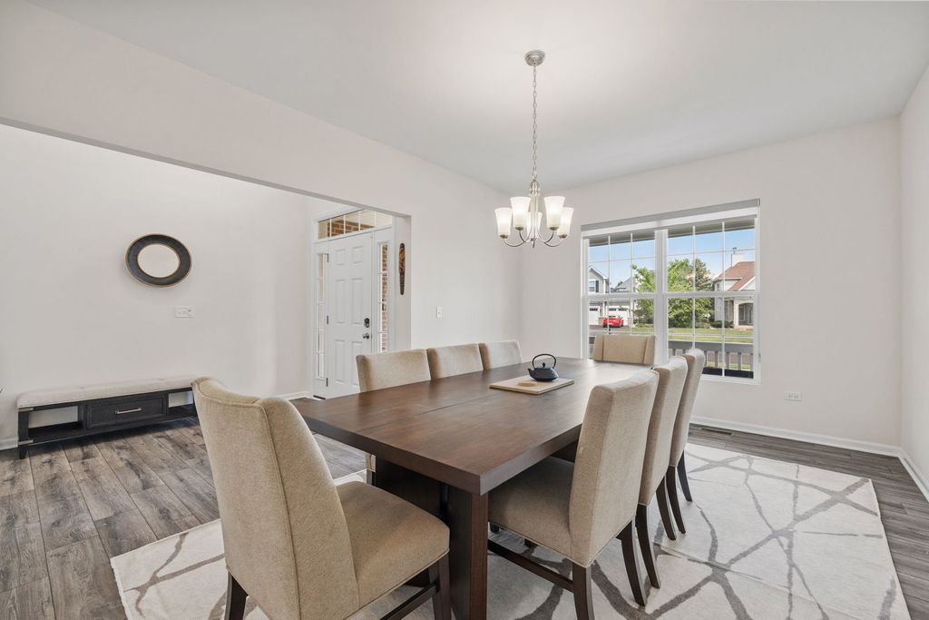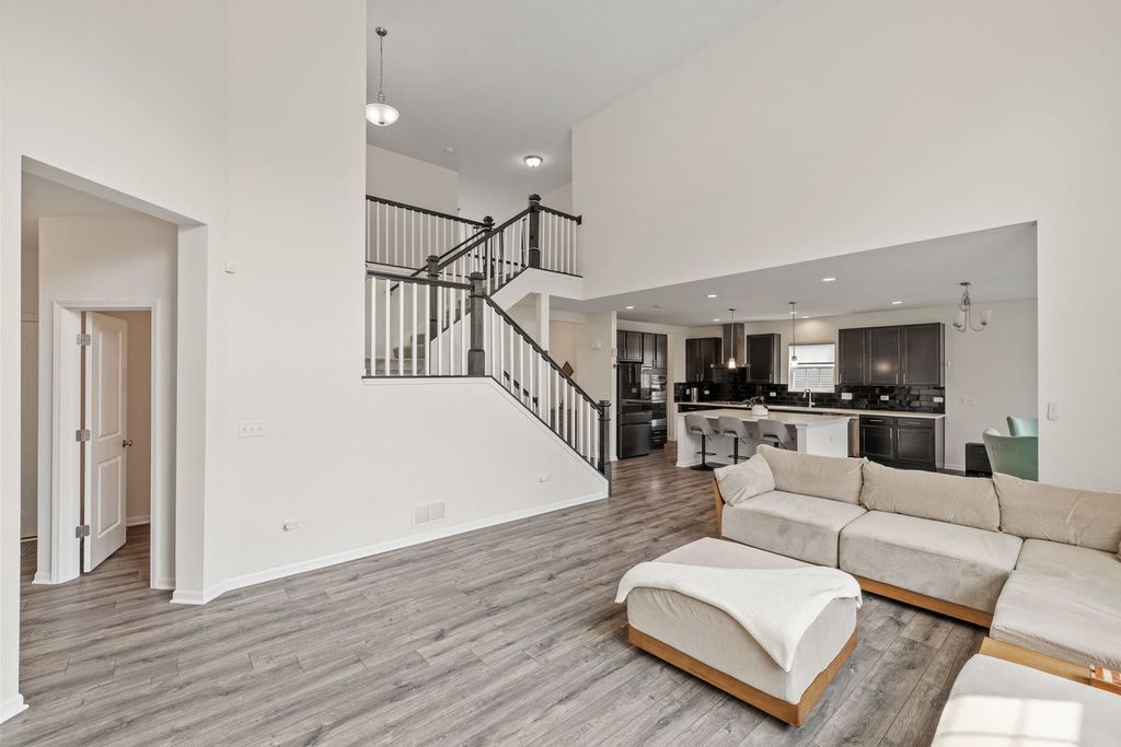RARE first-floor bedroom with a private ensuite bathroom! Built in 2023, this like-new home delivers the feel of new construction without the wait! Step into luxury with this stunning 5-bedroom, 3.1-bath Hudson model by M/I Homes, offering modern design, thoughtful functionality, and smart home technology throughout. The main level features prefinished wood laminate flooring, and a breathtaking two-story family room with soaring 18-foot ceilings that flood the space with natural light. The gourmet kitchen is an entertainer's dream, boasting an oversized 7.6' x 5.6' island, Carrara Mist quartz countertops, solid maple cabinetry, a WALK IN PANTRY, a Samsung Bespoke 4-Door French Door Refrigerator with Family Hub, and WiFi-enabled appliances. Smart switches are installed throughout for added convenience. The kitchen, breakfast area, and family room flow seamlessly together, and just off the breakfast area is an upgraded morning room, perfect for enjoying coffee or keeping an eye on the kids. Upstairs, the owner's suite is tucked into a private corner and features a spacious shower, separate soaking tub, private water closet, quartz vanity, and a generous walk-in closet. Three additional bedrooms, a full hall bath, and a conveniently located second-floor laundry room complete the upper level. All bathrooms feature quartz countertops for a sleek finish. Additional highlights include a covered front porch, formal dining room, mudroom, and a full basement ready for your finishing touches. Located in Plainfield and feeding into the HIGHLY RATED OSWEGO SCHOOL DISTRICT #308, this home offers countless upgrades and impeccable style-truly a must-see!