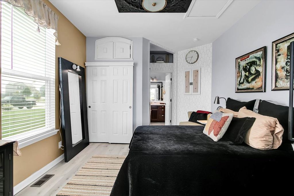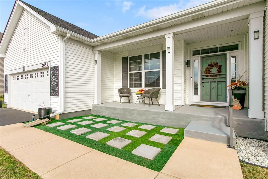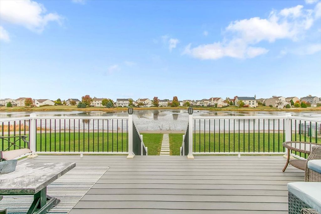 Light-filled and spacious, this open floor plan features vaulted ceilings throughout the entry and main living area. Take in stunning pond views and a lively natural setting with diverse birds and wildlife, either from the large composite deck or while enjoying evening walks along the path accessed right from the back yard. The lower level, with its own private entrance, is perfect for independent living and includes two bedrooms, a full bath, kitchenette, and living room. Garden windows flood the space with natural light and pond views, while the unfinished portion of the basement provides endless possibilities for a recreation room, gym, workspace, or extra bedrooms. The two-car garage includes a convenient bump-out area giving room for yard supplies and trash can storage. Interior finishes include luxury vinyl flooring, standard vinyl, and carpet in the bedrooms and front sitting room. This home is very clean, smoke-free, and pet-free, with plenty of storage throughout. Perfect for hosting holiday gatherings, with generous open spaces. The front porch offers room for seating to enjoy warm summer evenings, while the expansive composite deck provides additional outdoor living space. Appliances stay, excluding electric fireplaces and televisions. The feature wall in the living area invites the homeowner's own vision for a custom entertainment center design. Beautiful quartz countertops and a stunning 12-foot island that seats 10-12 complete this exceptional home.