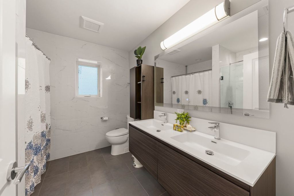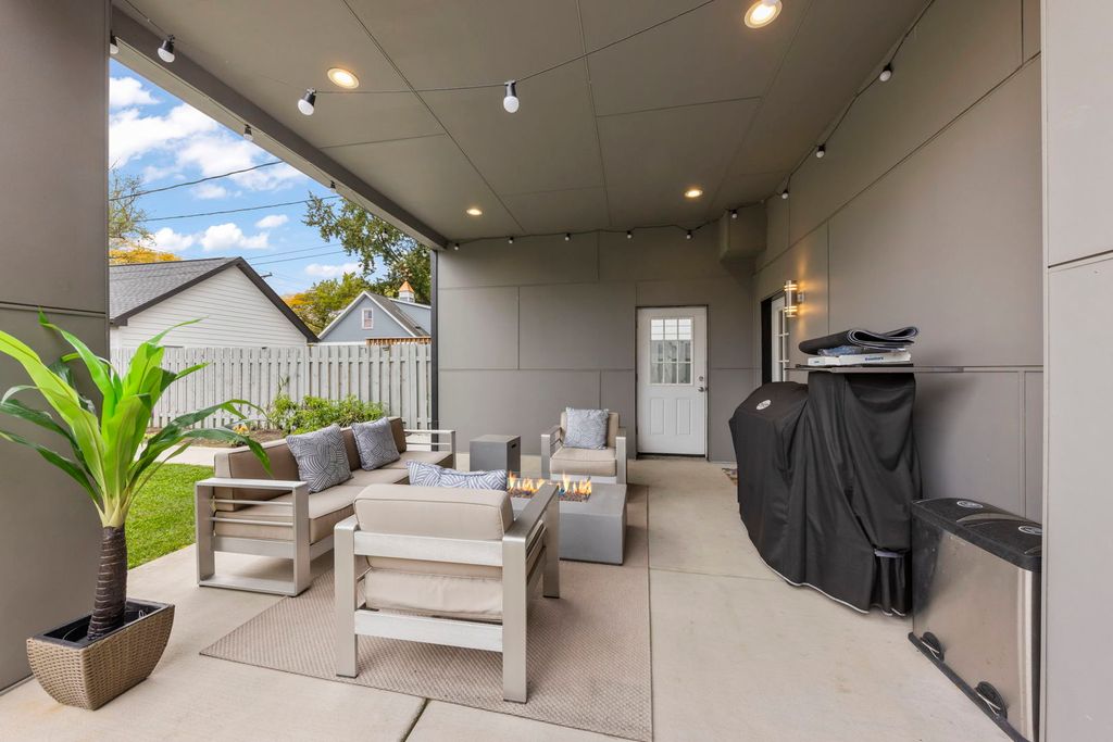 East-facing and beautifully designed, this exceptional home blends modern luxury with thoughtful functionality. Step inside to discover 6" wide hardwood plank flooring throughout and a stunning open-concept layout that flows effortlessly from the grand entryway to the expansive kitchen and family room. The chef's kitchen impresses with 42" cabinetry, a quartz waterfall island with open shelving, a wine fridge, overhead vent hood, and gently textured subway tile backsplash. A walk-in pantry and spacious dining area make entertaining easy. The living room, family room and optional office/craft/bedroom ALL feature flexible layouts. Sliding glass doors provide access to the covered AND uncovered patio areas, overlooking an expansive flat yard-perfect for a playset, garden, or future pool. The fully fenced yard includes two gates, concrete walkways, and garden bed. Upstairs, find five bedrooms including a versatile ensuite with dual closets AND the primary en-suite offering a large walk-in with California Closet storage plus an additional flex room ideal as a nursery, prayer room, or second closet. The upper-level laundry room features Samsung washer/dryer, utility sink, and ample cabinetry. Every detail has been thoughtfully chosen including elevated-Hunter Douglas shades (automatic on the main level), Andersen windows with deep 14" sills, Nest thermostat, Vivint security system, Navien tankless water heater, and dual Trane HVAC. The three-car garage offers custom shelving and a Tesla charger that stays. Situated walking distance to schools, near Devon Market and close to the beach, this home delivers convenience, comfort, and cutting-edge design.