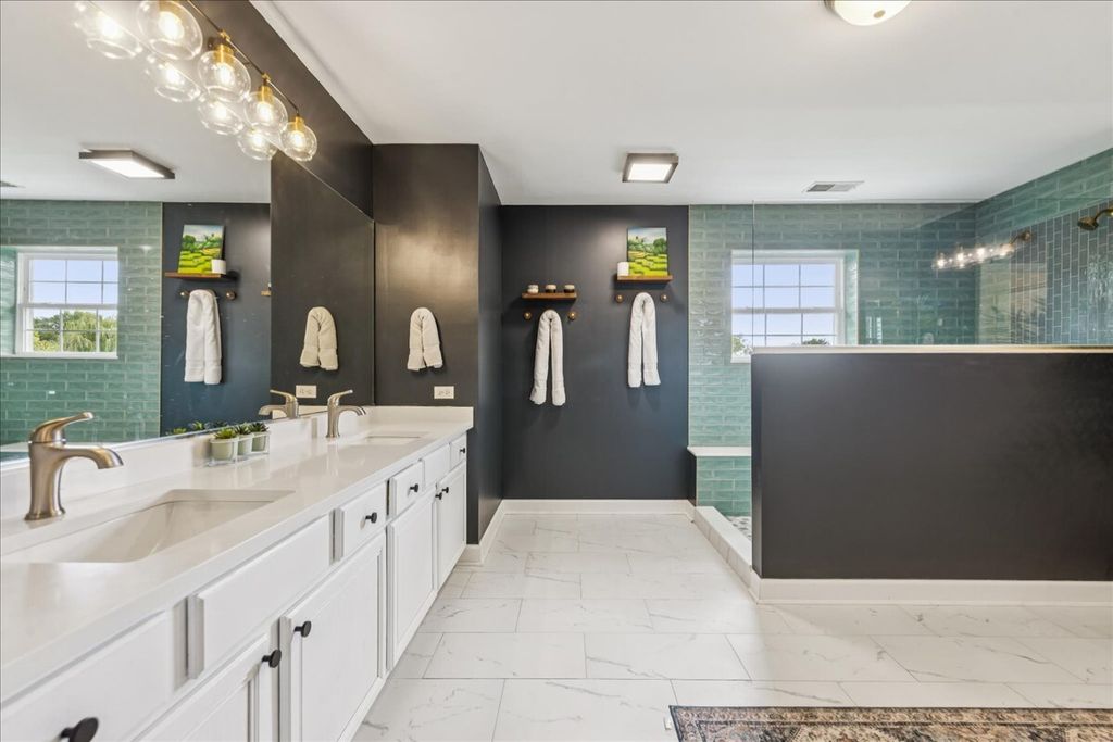 Perfectly positioned on a quiet cul-de-sac in the prestigious Oaks of Barrington, this beautifully updated home offers over 6,900 sq ft of refined living space, including a fully finished walk-out lower level. Upon entry, a dramatic two-story foyer with a sweeping staircase makes a striking first impression, setting the tone for the home's timeless elegance. The expansive layout features five bedrooms upstairs, a main floor office (or sixth bedroom), and five full baths, including one on the main level. The bright, open eat-in kitchen showcases a large center island, quartz countertops, high-end appliances, a walk-in pantry, and access to a new low-maintenance composite deck ideal for entertaining. The inviting family room offers abundant natural light, a cozy gas fireplace, and a convenient second staircase. The luxurious primary suite includes a spacious sitting area, a remodeled spa-like bath with a walk-in shower, and a generous walk-in closet. Two sets of Jack & Jill baths connect the additional upstairs bedrooms. The finished walk-out lower level adds exceptional living space with a full bath, an additional office/flex room, and a large recreation area that opens to a newly finished patio with custom pavers. Additional highlights include refinished hardwood floors, a three-car garage with 240V EV outlet, main floor laundry/mudroom with new washer and dryer, and nine-foot ceilings throughout. Enjoy the neighborhood park, nearby walking trails, and top-rated Barrington 220 schools, all just minutes from downtown Barrington, the Metra, and I-90. Quick close possible.