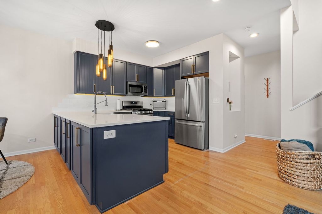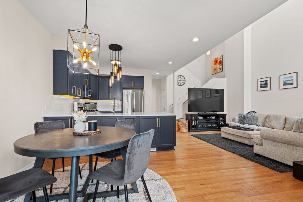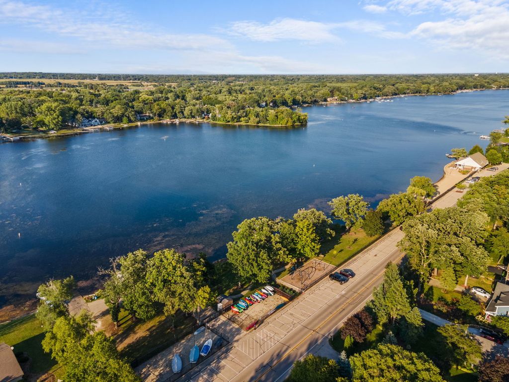 Beautifully maintained and updated 2-story townhome featuring 2 bedrooms, 2.1 baths, and an unfinished basement offering great storage or future living space. The beautiful kitchen boasts gorgeous NEW 42" cabinets, a large peninsula with extra cabinetry, quartz countertops, newer stainless steel appliances, an undermount sink, and a stylish new faucet. Enjoy hardwood floors throughout the first level and a spacious living room with a vaulted ceiling for an open, airy feel. The primary suite includes a large soaking tub, separate shower, and granite vanity. A second bedroom and full bath complete the upper level. Relax outdoors on the charming private front porch or the covered back patio-perfect for morning coffee or evening unwinding. Convenient location walking distance to West Beach and the Crystal Lake Country Club!!