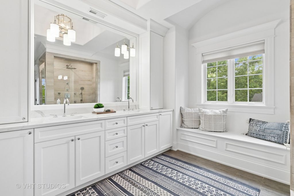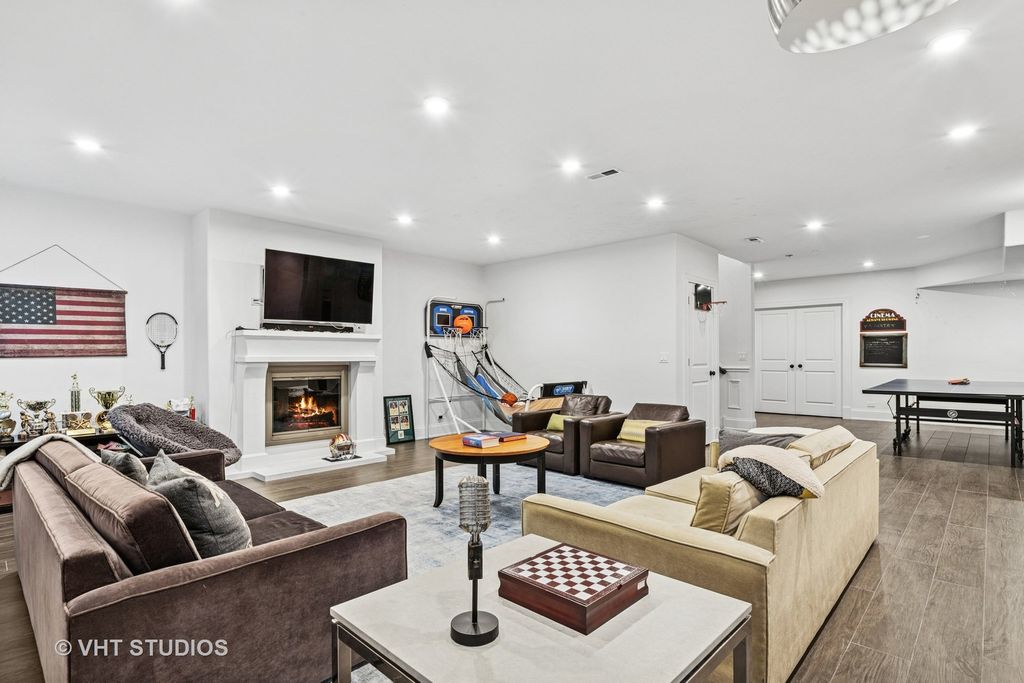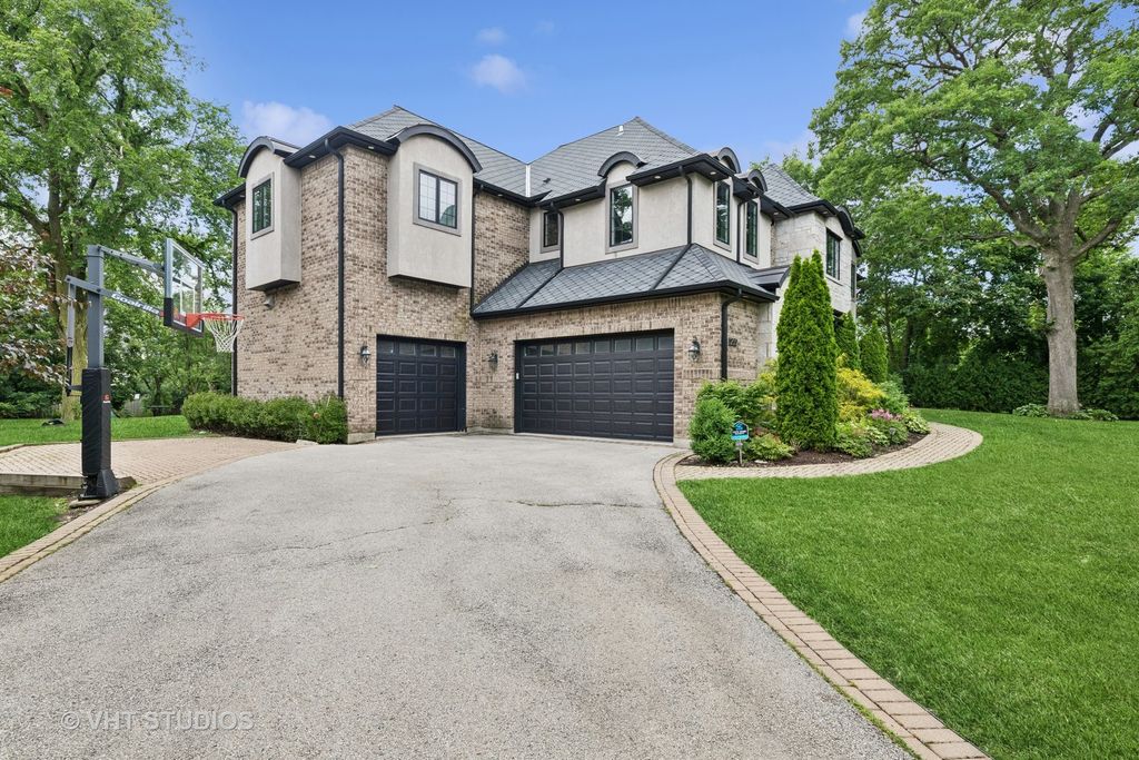 Welcome to an extraordinary residence, a true masterpiece of design and craftsmanship, perfectly situated on a secluded 0.74-acre professionally landscaped lot. This exquisite 5-bedroom home, with potential for a 6th in the basement, 4.1 bathroom brick and stone home offers an unparalleled living experience, blending luxurious finishes with a warm, inviting atmosphere. Step inside and discover a spacious open floor plan, meticulously designed to maximize natural light. The heart of this home is the chef's kitchen, a culinary dream featuring top-of-the-line appliances, custom cabinetry, and ample counter space. It seamlessly overlooks a magnificent living room, where soaring cathedral ceilings create an awe-inspiring sense of volume and an elegant backdrop for entertaining or quiet relaxation. Each of the generously sized bedrooms is a sanctuary of comfort, with many vaulted ceilings that enhance their spacious feel. The finished lower level extends the living space significantly, offering versatile areas for recreation, media, or a home gym, all kept cozy with the luxurious comfort of radiant floor heating. Outdoor living is equally impressive. A massive wrap-around patio provides an idyllic setting for dining and entertaining, complete with a charming outdoor fireplace that invites cozy evenings under the stars. The expansive yard offers endless possibilities for outdoor activities and the enjoyment of nature. Practicality meets luxury with a host of additional features including a convenient mudroom, a spacious walk-in pantry, and a three-car garage, providing ample storage and organizational solutions. This home is not just a dwelling; it's a lifestyle, meticulously crafted for those who appreciate the finest in residential living. A must-see property that truly embodies elegance and comfort.