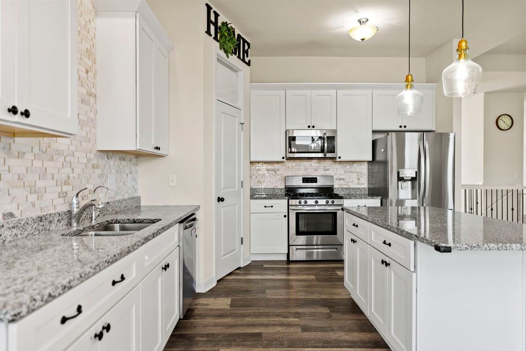 Beautiful Open-Concept Ranch! This stunning 2,040 sq. ft. home features 10-foot ceilings and a spacious layout designed for modern living. Offering 3 bedrooms, 2 baths, and a 3-car garage, this home truly has it all. The kitchen showcases granite countertops, a large island, 42" soft-close cabinets, and stainless steel appliances. The flexible formal dining room can also serve as a comfortable home office. The primary suite is a relaxing retreat with a tray ceiling, bay windows, private bath, and walk-in closet. Luxury vinyl tile flooring in the bathrooms, laundry room, and entryway adds both style and durability. Convenient main-floor laundry. Levolor blinds throughout the home. The full basement with egress window and rough-in plumbing is ready for your finishing touches. Step outside to enjoy the deck and private yard perfect for entertaining or relaxing. Brand new roof in 2025! Located in a desirable neighborhood within the sought-after Roscoe school district.