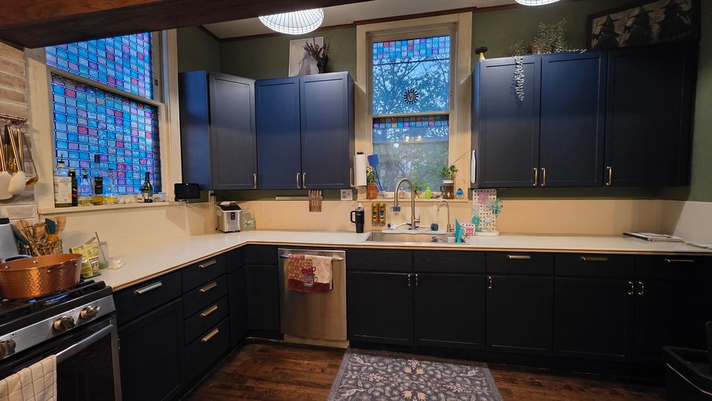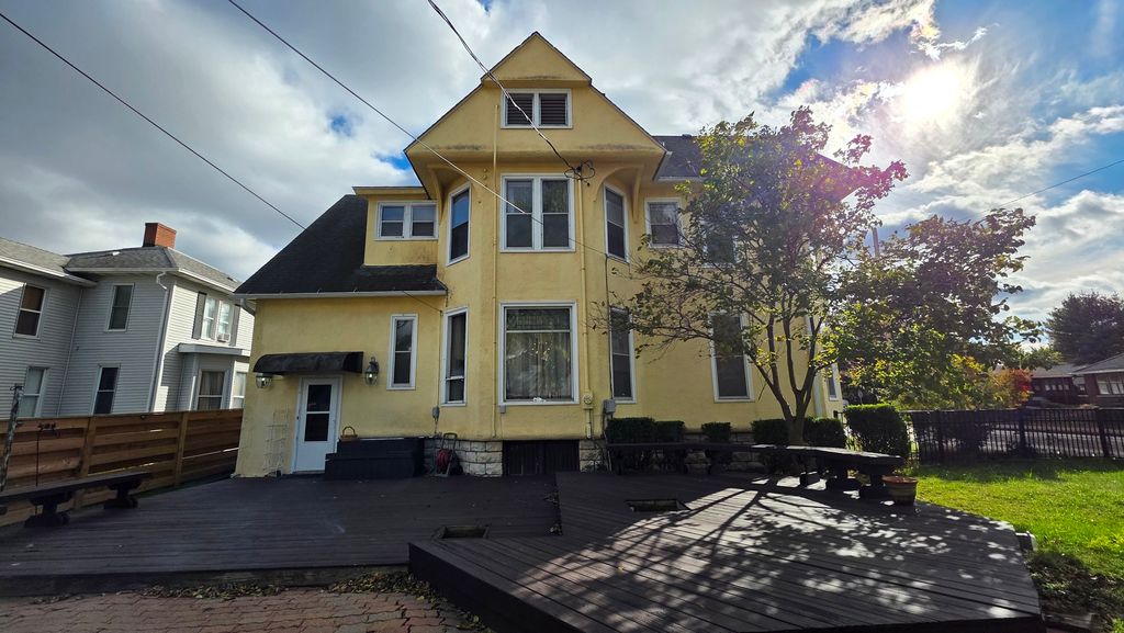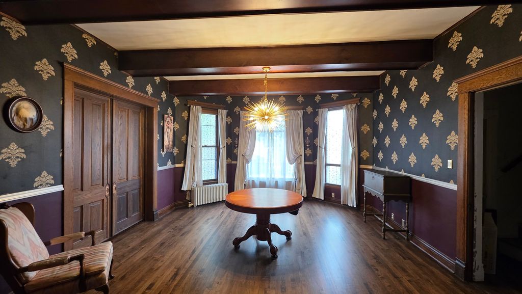 Discover timeless elegance in this stately 1897 Victorian gem, gracefully positioned on a spacious, fenced corner lot. With 4 large bedrooms and 2 1/2 baths, this home seamlessly blends historic charm with modern updates, featuring soaring 10-foot ceilings on the main level and 9-foot ceilings upstairs. From the moment you arrive, the enclosed wrap-around porch and original etched glass front door welcome you into a world of craftsmanship and character. Inside, you'll be enchanted by the beautifully preserved wood staircase, gleaming hardwood and mahogany floors, exposed beams, intricate crown molding, and breathtaking leaded and stained glass windows. The formal living room showcases custom moldings, pocket doors, and architectural beams, while the elegant dining room offers rich mahogany flooring, chair rail, and ornate crown molding-ideal for hosting unforgettable gatherings. The spacious eat-in kitchen is a chef's delight, featuring Corian and butcher block countertops, stainless steel appliances, abundant cabinetry, and a walk-in pantry. Upstairs, four generously sized bedrooms include a tranquil primary suite with an adjacent sitting room or nursery. The convenience of 2nd floor laundry and a full staircase to the walk-up attic (ready to be finished for additional living space) adds to the home's versatility. Step outside to enjoy the two-tiered deck overlooking the private, fenced yard. A 2 1/2 car garage and ample off-street parking provide practicality, while updated electrical and plumbing, radiant heat, and a charming (non-operable) fireplace in the study enhance comfort and style. Lovingly updated by the current owners, this home is a true labor of love. Don't miss your chance to own a piece of history and continue its legacy. This Victorian beauty is ready to welcome its next chapter- YOU!