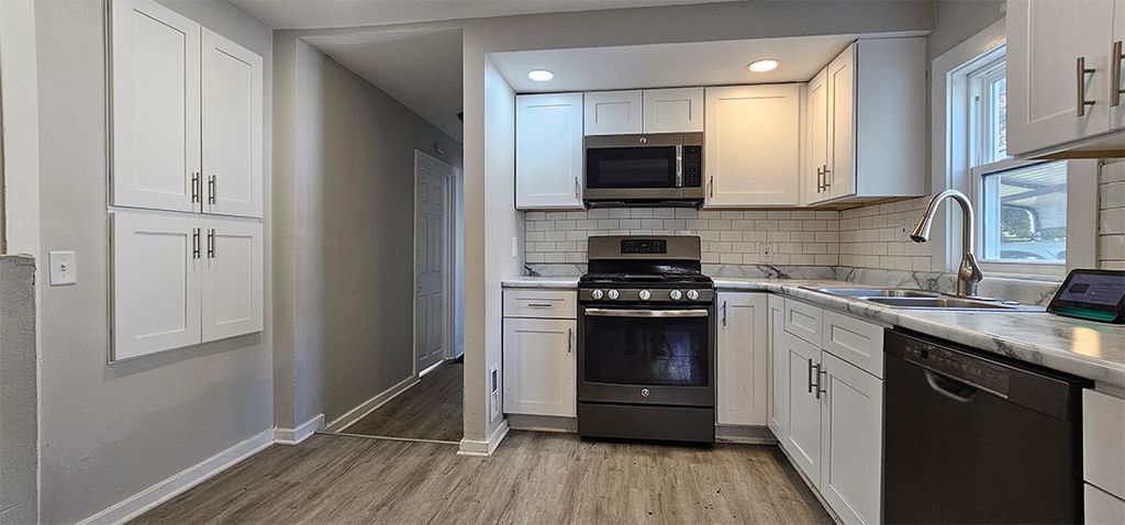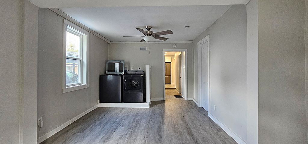 Nice, cozy home maximizes ever inch! This kitchen was made for the cook in mind! Stainless steel stove, frig, microwave and dishwasher stay. There is lots of counter space, ample cabinet storage, and room for you to easily navigate around the family. Front room was used as a dining room and the back room as the family room. The family room has vaulted ceilings. Bedrooms are bright and have ceiling fans (All rooms in this home have fans, except for the bathroom.) Double paned windows bring in lots of natural lighting. Rooms are not huge, but there is a lot of good living space in this 3-bedroom home. Been looking long?...It is hard finding a comfortable home for this price. All you really have to do is add your personality and pack the family!