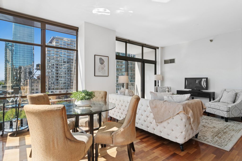 Imagine gazing out your floor to ceiling corner windows kissed by the South and West sunlight, while overlooking the lush surroundings of the neighboring townhomes & Webster Park. The open views will soothe your soul as you span the vistas around you including Soldier Field, the Lake & Lakefront. Outside, your private balcony off of the living room is a great place to unwind after work and take in the sunsets. Inside, this ideal floorplan features a formal foyer entry & spacious and open living/dining concept that is perfectly suited for entertaining while maintaining an element of privacy with a split bedroom configuration. Hardwood floors throughout with the exception of the primary. The upgraded kitchen features 42" cabinetry, a new Stainless steel Samsung appliance package, granite tops, backsplash and counters for maximum prep space and seating PLUS a pantry!! The primary suite is the perfect place to retreat with not only a walk in closet, but bonus linen closet and an all marble bath with stand up shower & frameless door and a soaking tub for relaxing at the end of a long day. The 2nd bathroom also features a stand up shower & marble throughout. Enjoy lakefront living and all the South Loop has to offer including restaurants, parks, Museums, the convenience of public transportation and so much more. Museum Park amenities include 24 hr door staff, impressive exercise room, amazing and rare luxurious rooftop sundeck with breathtaking views, access to clubhouse with outdoor pool & sundeck + community room. Unit being sold AS-IS but in good condition. Garage parking additional 35K***CLICK ON 'OTHER MEDIA' LINK TO SEE THE DRONE VIDEO***
