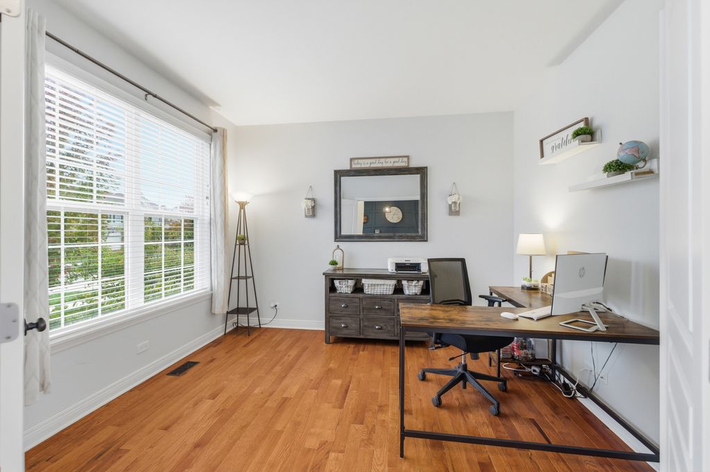 Warmth abounds in this picture perfect gorgeous 2-story, nestled in the impressive Covington Lakes subdivision. This home combines timeless charm with today's most sought after concept designs. Open spaces and soaring high ceilings set the stage for a truly exceptional living space. Gleaming hardwood flooring grace the 1st floor. The spacious kitchen is a cook's delight, ideal for entertaining, or relaxed family nights, it boasts an abundance of cabinetry, center island, quartz counters, Stainless Steel appliances and a walk-in pantry "to-die-for." 1st floor laundry adds everyday convenience and style. 1st floor elegant office has great natural light and is ideal for remote work or study. Bright family room featuring a stunning wall of windows, open to the kitchen for effortless entertaining. Generous sized bedrooms offer ample space while the generous sized primary suite serves as a private retreat with spa inspired luxury bath and expansive walk-in closet. The full unfinished basement welcomes your creativity with endless possibilities ideal for a man cave, teenage retreat, or kids' playroom. Fully finished garage, an incredibly awesome space for relaxing or entertaining. Outside the serene backyard feels like a private escape with no rear neighbors, perfect for summer barbeques, or evenings entertaining under the stars!!! A sought-after location, just minutes from world class shopping, transportation, parks and schools!! This home offers the perfect balance of everyday comfort and refined living.