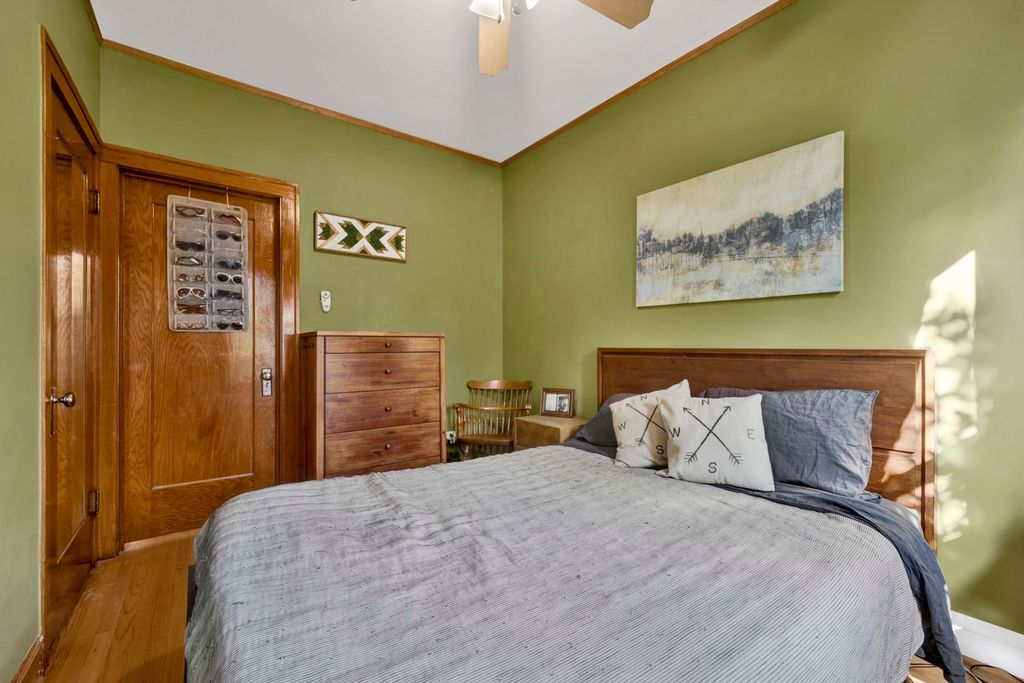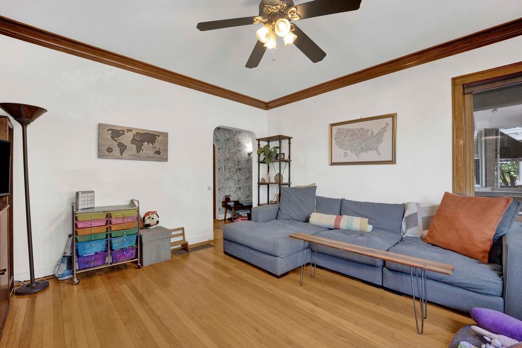 Charming Brick Bungalow Steps from McKinley Park! Welcome to this beautifully maintained brick bungalow, perfectly located just steps from the picturesque McKinley Park. Brimming with natural light, this inviting home features a spacious living room with oversized windows that create a bright and airy atmosphere. The updated kitchen is a true highlight, offering granite countertops, stainless steel appliances, and a generous peninsula-ideal for casual dining, meal prep, or entertaining guests. Throughout the home, timeless character meets modern comfort, with unpainted wood trim, stunning stained-glass accents, and a classic transom window that adds a touch of vintage charm. The property offers incredible potential for future expansion, featuring interior stairs that lead to a full attic and a large, dry basement-perfect for storage or a future recreation room, home office, or guest suite. Step outside to enjoy a private brick patio, providing the perfect backdrop for relaxing or hosting outdoor gatherings. The oversized two-car garage offers abundant storage and convenience. Additional updates include a newer furnace and central air conditioning, ensuring comfort year-round. This move-in-ready home combines classic Chicago bungalow charm with thoughtful updates and unbeatable location.