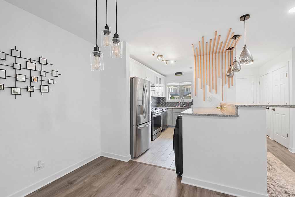 Welcome to this stunning 2-story townhome featuring 3 bedrooms and 1.5 baths in a highly sought-after community. The updated kitchen boasts granite countertops, new cabinetry, a custom tile backsplash, and new stainless-steel smart appliances. Enjoy plenty of counter space, a pantry closet, and a kitchen sink perfectly placed beneath a sunny window. New wood floors flow throughout the main level, complemented by modern lighting. The spacious living room features patio doors leading to a private yard-ideal for relaxing or entertaining. A convenient first-floor powder room and separate dining area complete the main level. Upstairs, you'll find three generous bedrooms, including a large primary suite with a double closet and ceiling fan. Freshly painted garage with custom storage, newly added insulation & EV charger. Roof replaced in 2024. This desirable community offers exceptional amenities including a clubhouse, playground, tennis and basketball courts, and a large pool. Move-in ready and full of thoughtful upgrades, this home is a must-see! Great opportunity for investors as well since rentals are allowed.