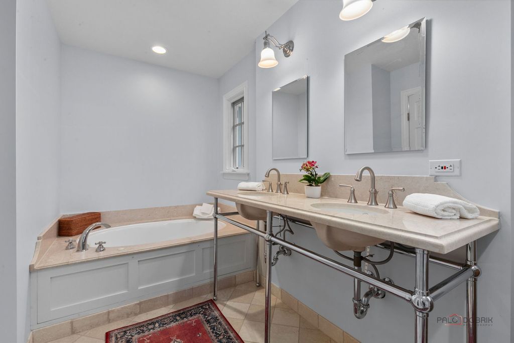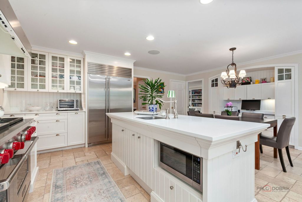 Prepare to be impressed by this gorgeous updated and expanded 5-bedroom, 4-bath home in Whispering Oaks that offers almost 3,800 SF of elegant living above grade plus a lovely finished lower level! Features include a fabulous updated kitchen, beautifully renovated baths, rich hardwood and travertine floors, custom millwork, a spacious lower level, and a HUGE, private backyard. This home truly has it all! The gracious foyer includes lovely moldings and an elegant staircase, leading to a light-filled living room with a bay window, fireplace, and gleaming hardwood floors. The living room flows seamlessly into a stylish dining room adorned with a beautiful chandelier and plantation shutters. The chef's kitchen is a dream come true, showcasing a large center island, travertine floors, built-in desk, double sinks, high-end stainless steel appliances, and stunning backyard views through French doors. The adjacent family room features a stone-surround fireplace, custom built-ins, and plenty of room to relax and entertain. Upstairs, you will find an expansive second floor with hardwood floors throughout, 5 spacious bedrooms and 3 beautiful full bathrooms. The primary suite offers a tranquil retreat with its own private balcony, luxuriously updated spa-like bathroom with soaking tub, separate shower, dual vanities, walk-in closet, sitting area, and gorgeous views of the grounds. The lower level provides the perfect getaway, complete with recreation and gaming areas, a workout room/office, and plenty of storage. A spacious mudroom with built-in bench and a separate laundry area conveniently connect to the attached 2.5 car garage. Enjoy the spectacular backyard with a cedar fence for full privacy, professionally landscaped perennial gardens, and beautiful stone patios and walkways-perfect for outdoor living and entertaining. The home also features centralized wiring for network and audio/video, with ceiling and wall speakers in the kitchen and lower level. Wonderful new finishes, newer roof (2019) new electric car charger (2023), new water heater and recirculating pump (10/2021), two new sump pumps, (10/2021) HVAC (2019 for main unit), new washer and dryer (2024) and more! Located close to top-rated schools, the Metra train, beaches, and restaurants, this home combines luxury, comfort, and convenience. You'll be proud to call this house your home!