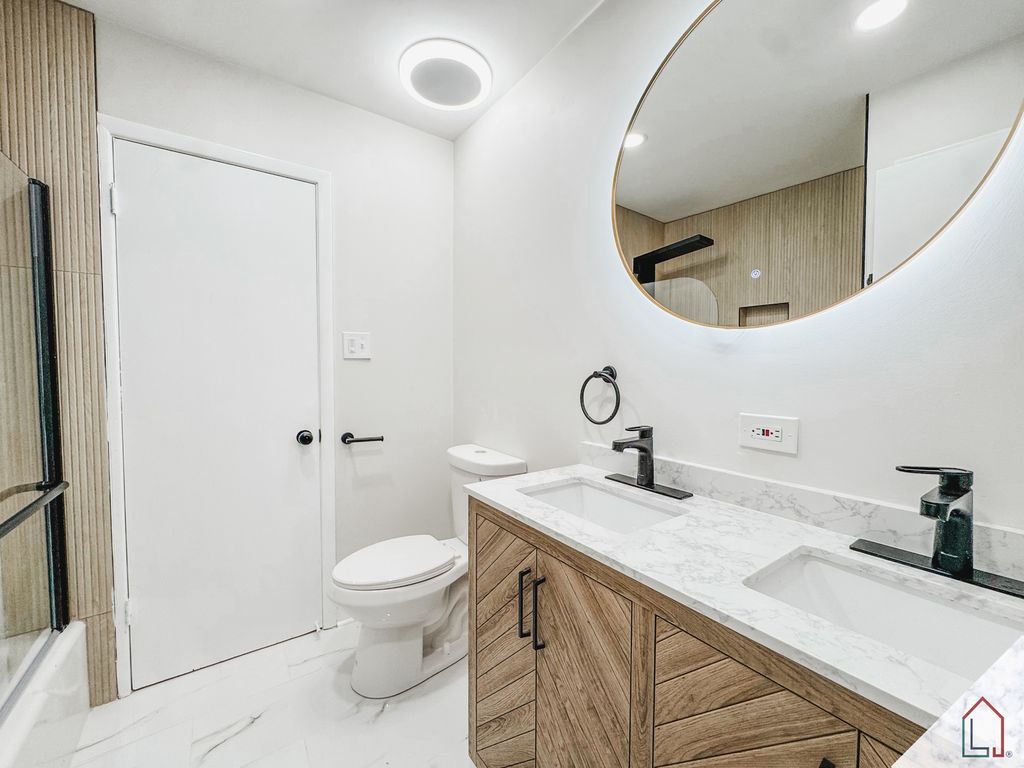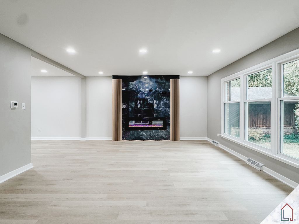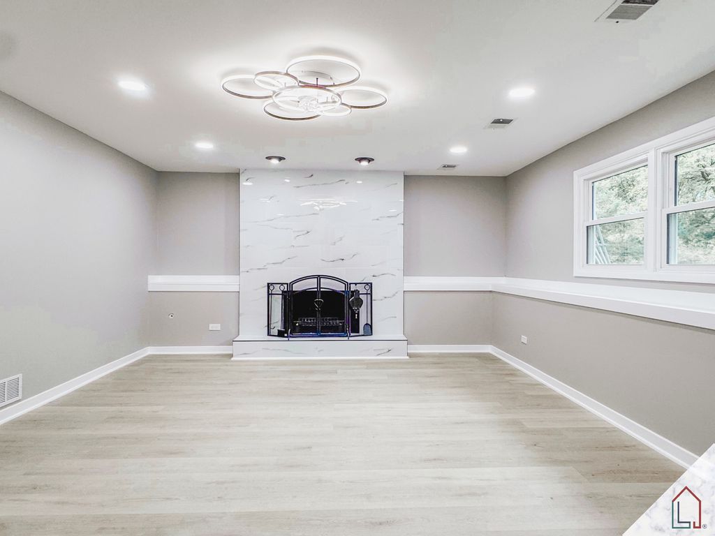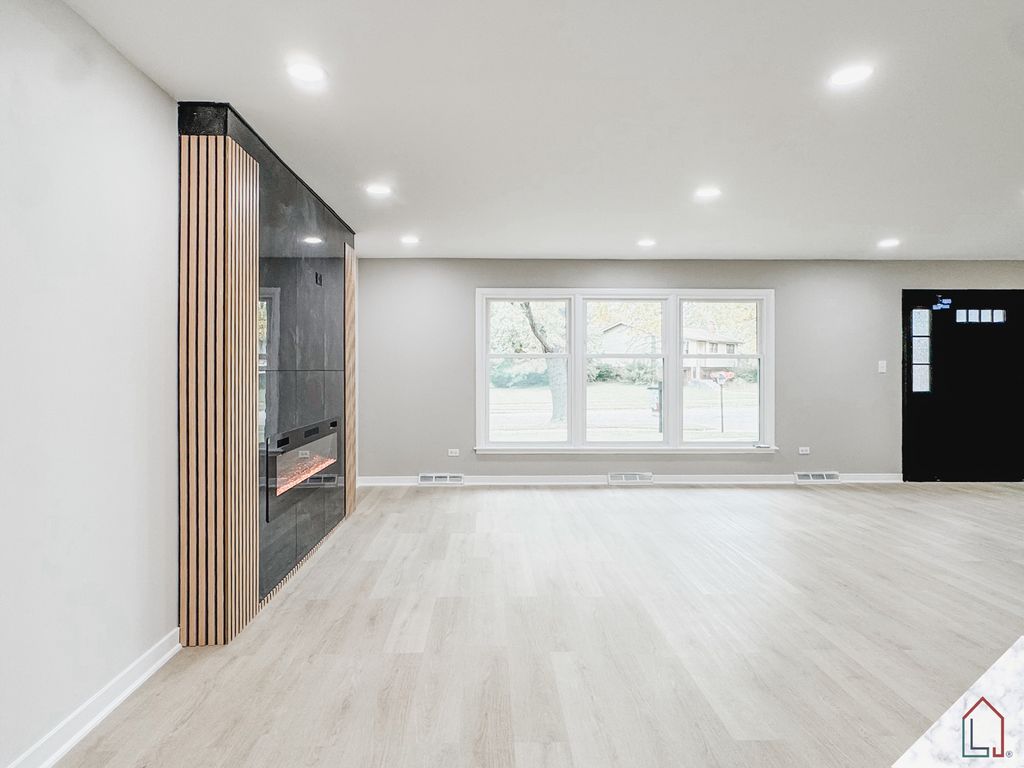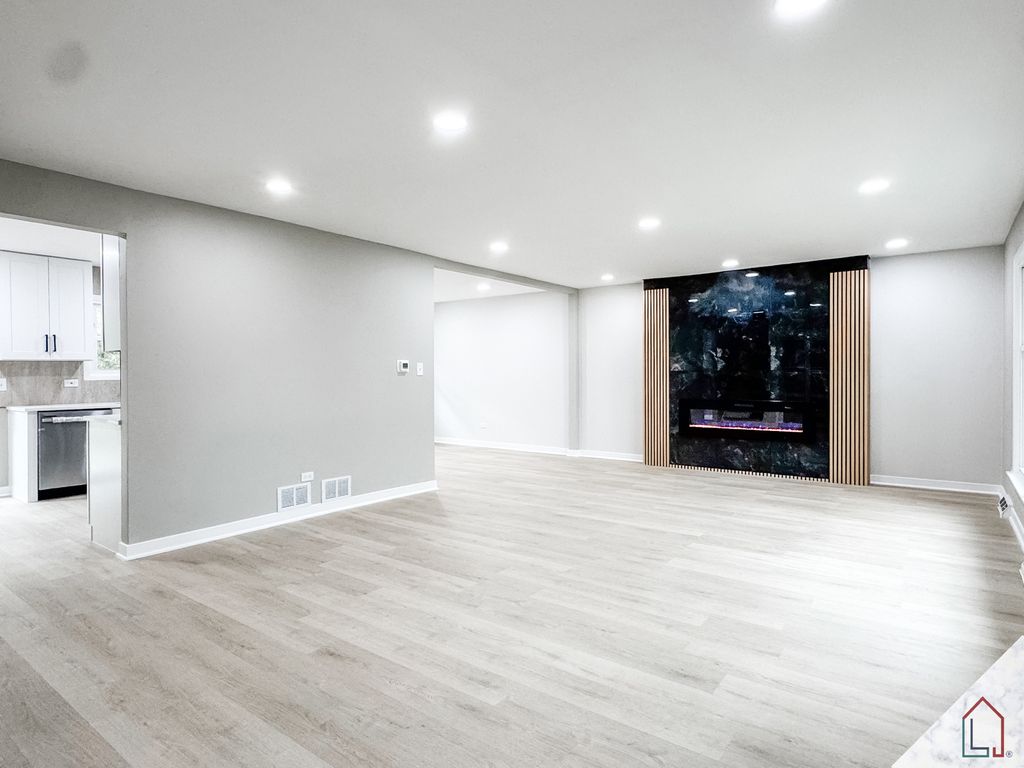 Welcome to your new home! A striking split-level residence in Richton Park where bold design meets everyday function. This fully renovated 3-bedroom, 2-bath home impresses from the start, offering 42" soft-close shaker cabinets, quartz countertops, and a spacious island at the heart of the chef-inspired kitchen. The living room stuns with an electric fireplace wrapped in onyx marble tile and sleek slated wood paneling, while the lower-level family room features a cozy gas fireplace perfect for gatherings. Upstairs, all three bedrooms provide generous space, with the primary suite boasting a double vanity, luxury body shower, and Bluetooth-enabled exhaust fan for added comfort and convenience. Nothing left to do but move in! *Agent Interest