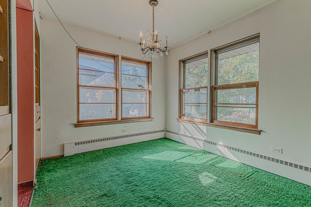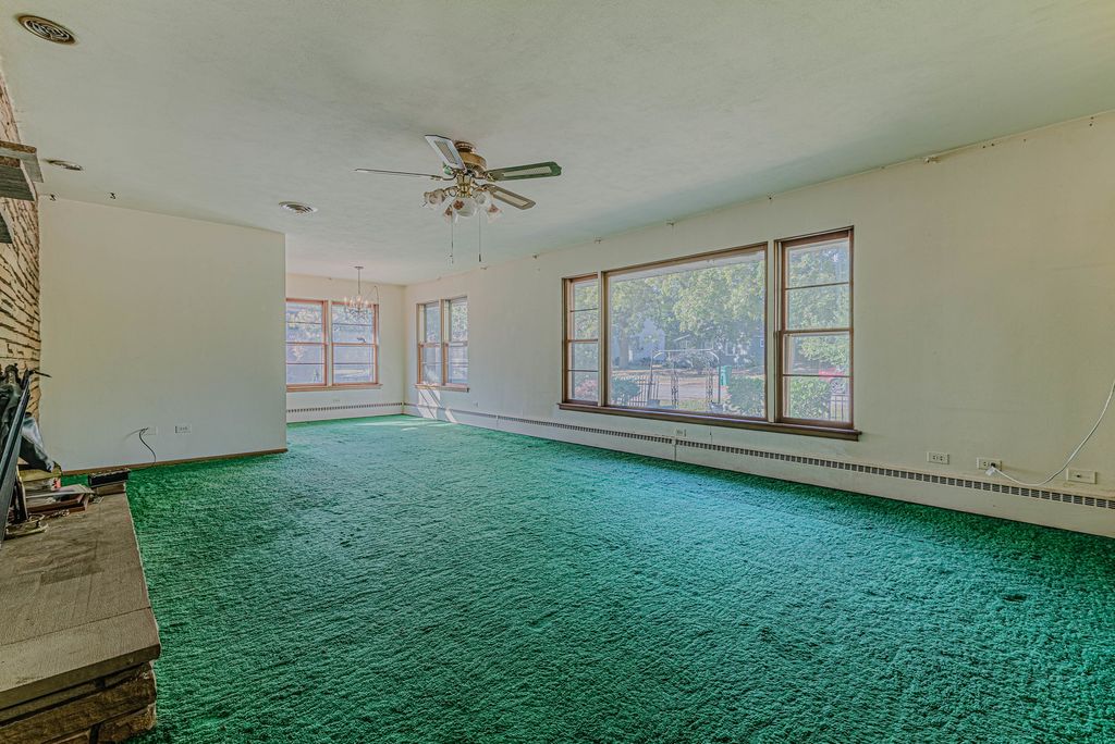 This all-brick ranch home sits on a large double-lot and is attractively located just blocks from Shiloh Park and downtown Zion. Enter through the front door into the large living room featuring a fireplace focal point with stone surround, a large wood-frame picture window, and adjoining dining area. Sizable bedrooms. Large enclosed porch, heated, three walls of sliding glass doors and built-in grill -- perfect for entertaining! Finished basement with bar top and workshop with workbenches. Shed in backyard for extra storage. Two-car garage. Opportunity to add value to the home. Selling AS IS.