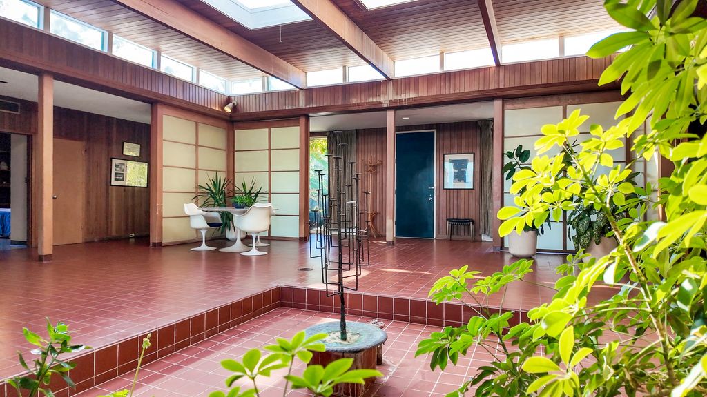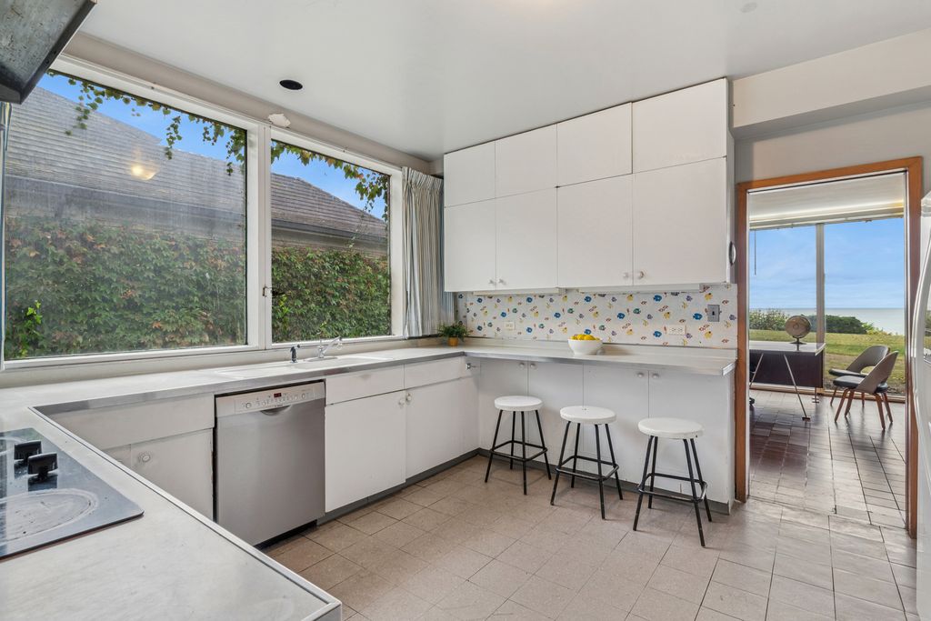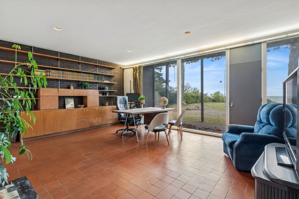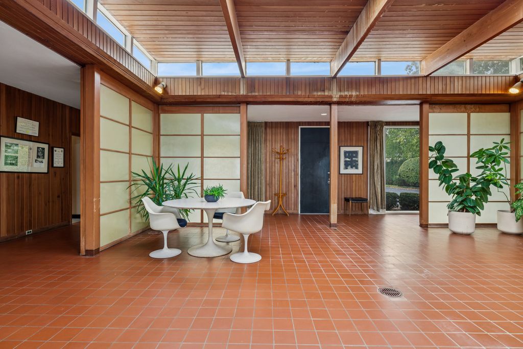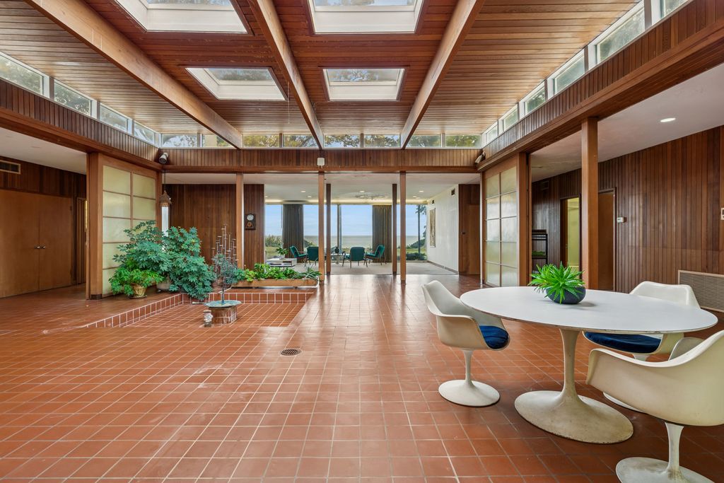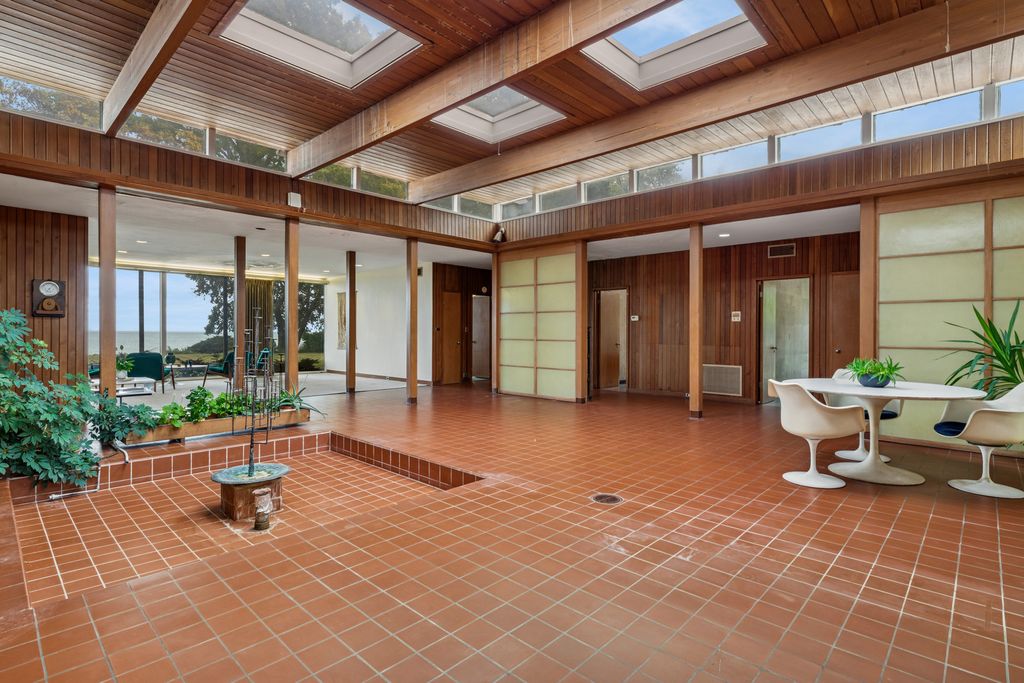 A rare lakefront opportunity in Kenilworth, set on nearly three quarters of an acre, features exceptional table land, a well-preserved bluff with a winding path to the lake, and a private lakefront! Designed by Keck and Keck in 1957, this one-level midcentury modern home showcases clean lines, expansive glass, and radiant heated floors throughout. At its center, a skylit atrium and clerestory windows create an ever-changing play of light. Shoji screens allow the space to shift from open gathering areas to a quiet retreat separated from the bedroom wing. The primary suite faces the lake, while three additional bedrooms line the peaceful south side. The main living areas open to panoramic lake views. A substantial seawall installed with adjoining neighbors protects a shoreline that naturally ebbs and flows. Walk to schools from kindergarten through high school and enjoy nearby Plaza del Lago with its high-end shops and restaurants.