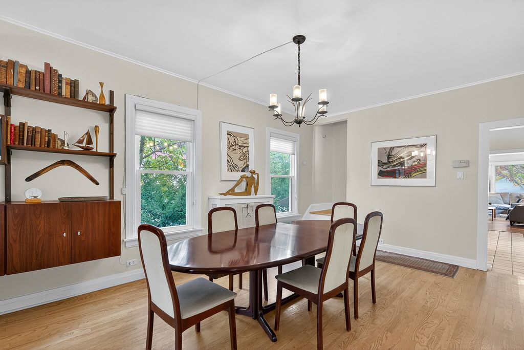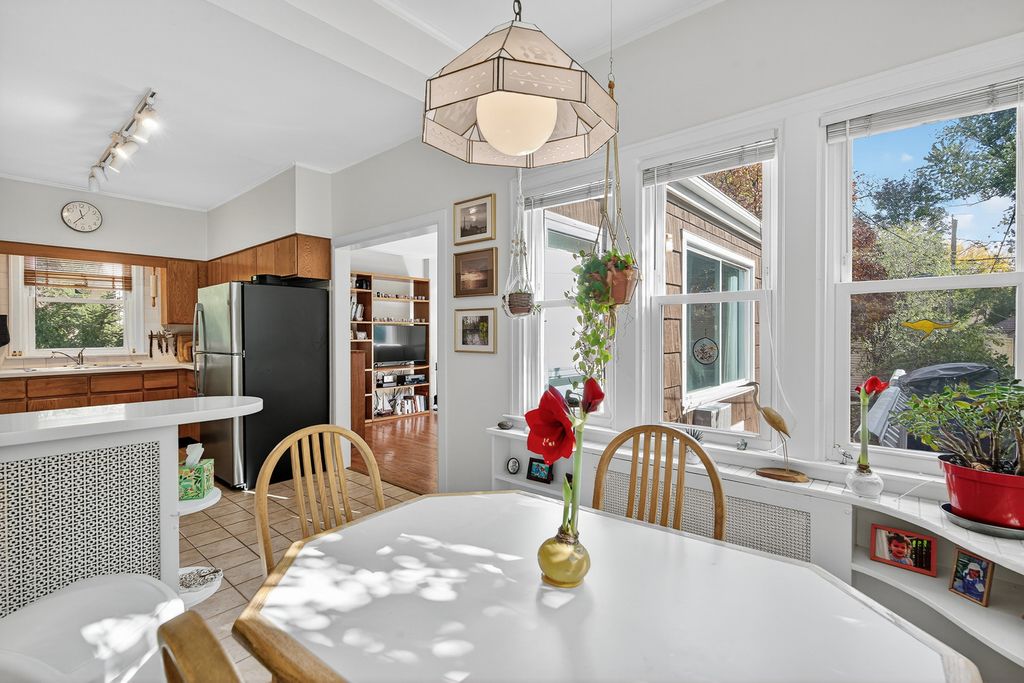 Discover this truly special Evanston gem - lovingly owned and cared for by the same family for more than 50 years. Set on the corner of a quiet, tree-lined street, this home blends timeless charm with distinctive architectural details you won't find in newer builds. From the moment you arrive, you'll feel the warmth and personality that make this property stand out. Original craftsmanship, and one of a kind features throughout - hardwood floors, built-ins, and unique design touches, celebrate the home's history and give each room it's own story to tell. The bright and inviting living room/dining room combo has generous windows that fill the space with natural light. The kitchen features new 2024 appliances. The wrap around windows in the breakfast area make it the perfect spot for casual meals, afternoon coffee, or simply enjoying the natural light all day long. The beautiful family room at the back of the home has a cozy wood burning fireplace and is highlighted by large windows spanning two walls that capture views of the backyard in every season. The main-level bedroom is ideal for a guest suite, home office, or den. Upstairs you'll find the primary bedroom and two more comfortable bedrooms with plenty of storage and a large walk in closet off the hallway. First floor is equipped with central air conditioning. Both floors feature a full bath. You'll find more unique features in the partially finished basement including a workroom for projects or hobbies, a vintage photography darkroom, and a dedicated laundry area. The roof of the home was replaced in 2020 and many windows were replaced within the past few years. The two-car garage is accessed from the rear alley providing convenient parking and additional storage - a sought-after amenity in this historic neighborhood. A majestic Purple Ash, planted by the owners more than 50 years ago, is now a stunning centerpiece of the private backyard and a living reminder of the home's history. This corner home is within close proximity to transit, shopping, dining, parks and the lakefront - making errands, commutes, and weekend outings a breeze. Full of personality, light, and more than five decades of family pride, 347 Florence Ave. is a home that tells a story - and invites you to continue it. With its distinctive spaces, enduring charm, and unbeatable location, this is an Evanston treasure ready for its next chapter.