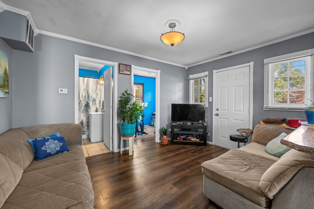 Charming and well-maintained 3-bedroom, 1-bath ranch! Enjoy relaxing on the adorable front porch that welcomes you into a cozy living room at the heart of the home. The galley kitchen features white cabinetry and a convenient breakfast bar. The spacious primary bedroom offers a large closet, and the laundry area includes a side-by-side washer and dryer for added convenience. Newer wood laminate flooring runs throughout the home. Outside, you'll find a long driveway leading to a detached 2-car garage, a generous backyard, and a large storage shed. Located on a quiet street just minutes from Round Lake Beach, shopping, dining, and the Metra. Within the desirable Grayslake School District. Whether you're looking to move right in, invest, or renovate to your taste-this home is a fantastic opportunity!