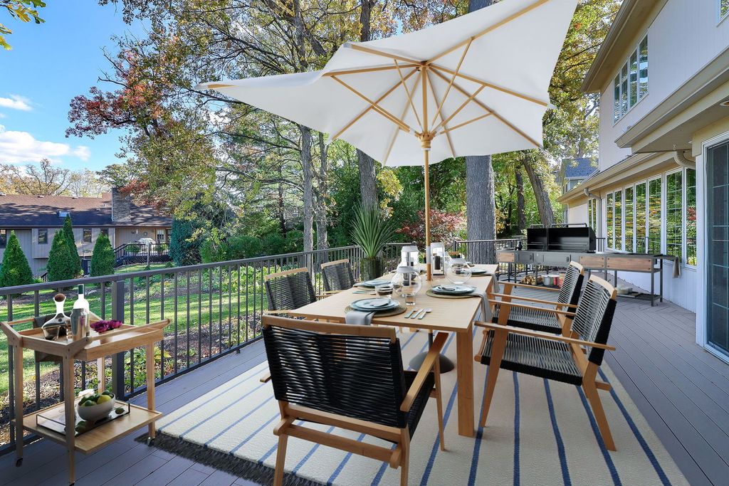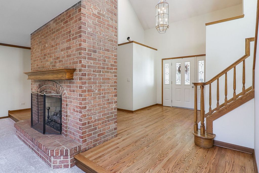 Beautifully updated 5-bedroom, 3-bath home in Darien's Carriage Way West neighborhood. Recent UPDATES include new carpet and hardwood floors (2025), new roof and water heater (2024), updated main level bath (2023), complete kitchen renovation with appliances (2021), new windows and sprinkler system (2020), and a renovated primary bath (2017). The chef's kitchen features a built-in Sub-Zero refrigerator, Bosch dishwasher, double oven, drawer microwave, beverage fridge, and freestanding ice maker. The open layout offers vaulted ceilings, a central fireplace, and access to a spacious composite deck overlooking the landscaped yard. A RARE MAIN FLOOR PRIMARY BEDROOM SUITE provides comfort and convenience, with two additional bedrooms and a full bath on the same level. Upstairs includes two bedrooms, a loft, full bath, and walk-in attic storage. The finished English basement with look-out windows adds versatile living space. Outstanding neighborhood close to parks, schools, dining, and shopping.