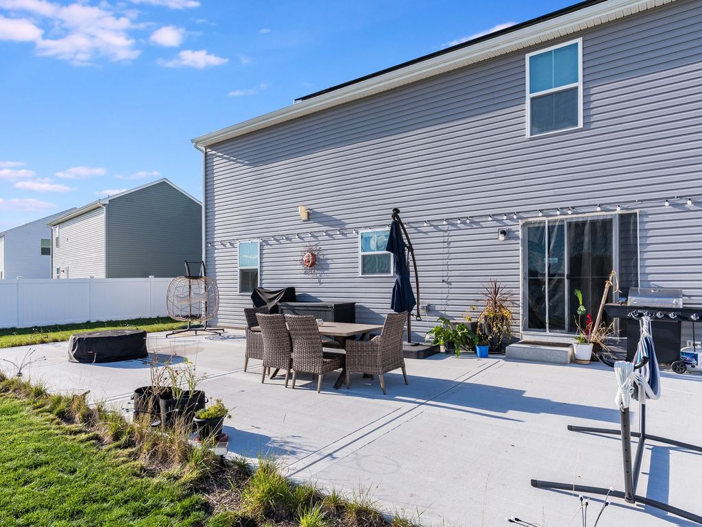 Welcome Home! This beautiful home in Yorkville, completed in 2024, offers modern construction, energy efficiency, and thoughtful upgrades throughout. Situated on a private lot with no rear neighbors, the home provides both comfort and peace of mind with recently installed major systems and a remaining builder structural warranty. Major mechanicals including the roof, high-efficiency furnace, and 50-gallon electric water heater were all installed in 2024. Energy-efficient features include a 9.89 kW solar panel system, along with a whole-home humidifier and upgraded 4" HVAC filtration system for improved indoor air quality. The home also includes a hardwired ADT security system, exterior security cameras, glass-break sensors, integrated smoke, fire, and smoldering detectors, and an active radon mitigation system. Outdoor living is enhanced by a new backyard patio and fully fenced yard installed in 2025. Additional highlights include no HOA, SSA fully paid, ample free street parking for guests, smart outdoor lighting, an insulated and drywalled garage, and all appliances included, including washer and dryer.
