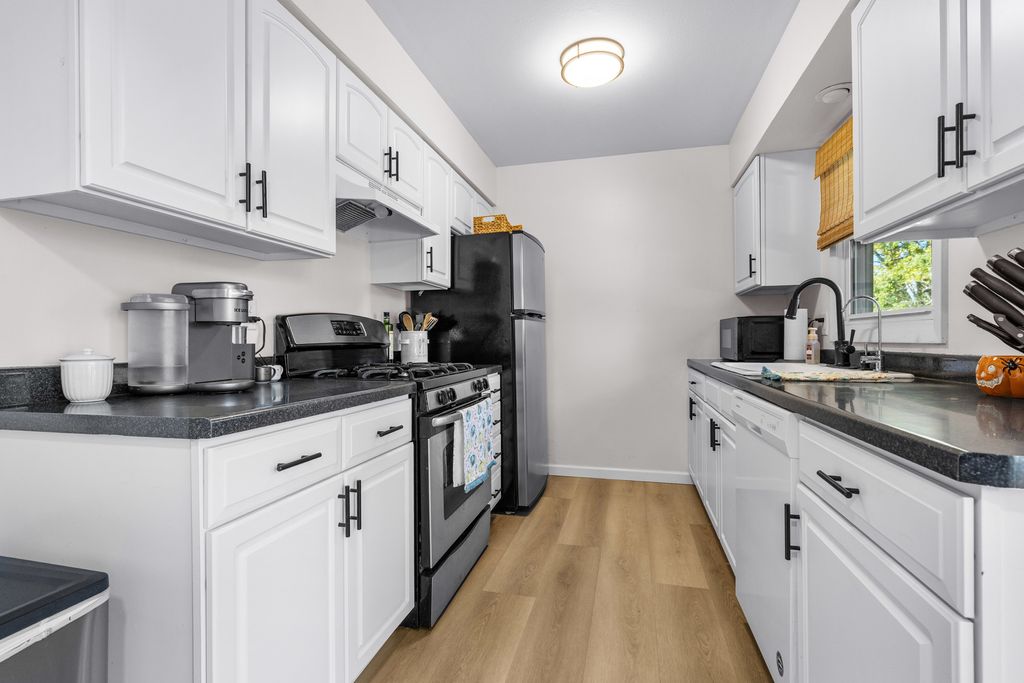 Step inside this beautifully updated ranch and fall in love! Freshly painted with all new LVP flooring and carpet, this home shines from top to bottom. The bright and airy living room features a gorgeous bay window that fills the space with natural light and flows seamlessly into the eat-in kitchen with crisp white cabinets, black countertops, and a slider to the deck-perfect for morning coffee or evening BBQs. Three comfortable bedrooms and an updated full bath complete the main level. The walkout lower level expands your living space with multiple finished areas, including a cozy family room with a fireplace, a second full bath, and direct access to the patio and spacious backyard. A two-car attached garage and move-in ready updates make this home a true gem!