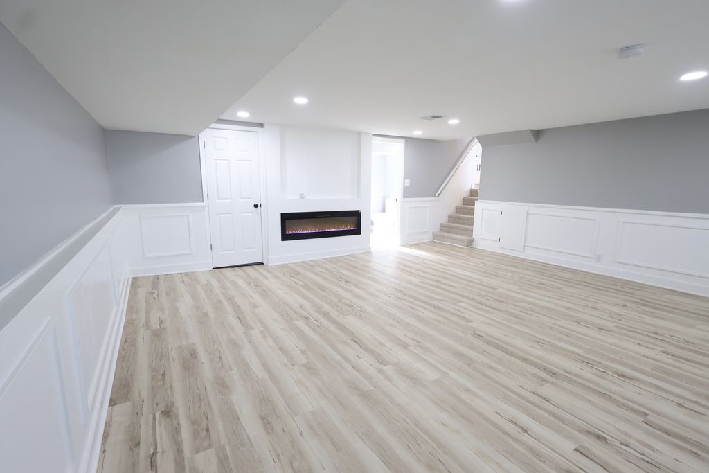 Beautifully updated tri-level home on a desirable corner lot featuring 3 bedrooms, 1.5 baths, a covered breezeway, and a 2.5-car garage. Step inside to a bright, open layout with a designer kitchen showcasing white shaker cabinets, bold black island, quartz waterfall countertops, tile backsplash, and stainless steel appliances. The home offers modern updates throughout, including new flooring, updated electrical and plumbing, newer furnace, water heater, and replacement windows. The lower level features a spacious family room with elegant wainscoting and a built-in electric fireplace, perfect for entertaining or relaxing. Located near parks and scenic walking/bike trails, this move-in ready home blends contemporary style with everyday comfort.