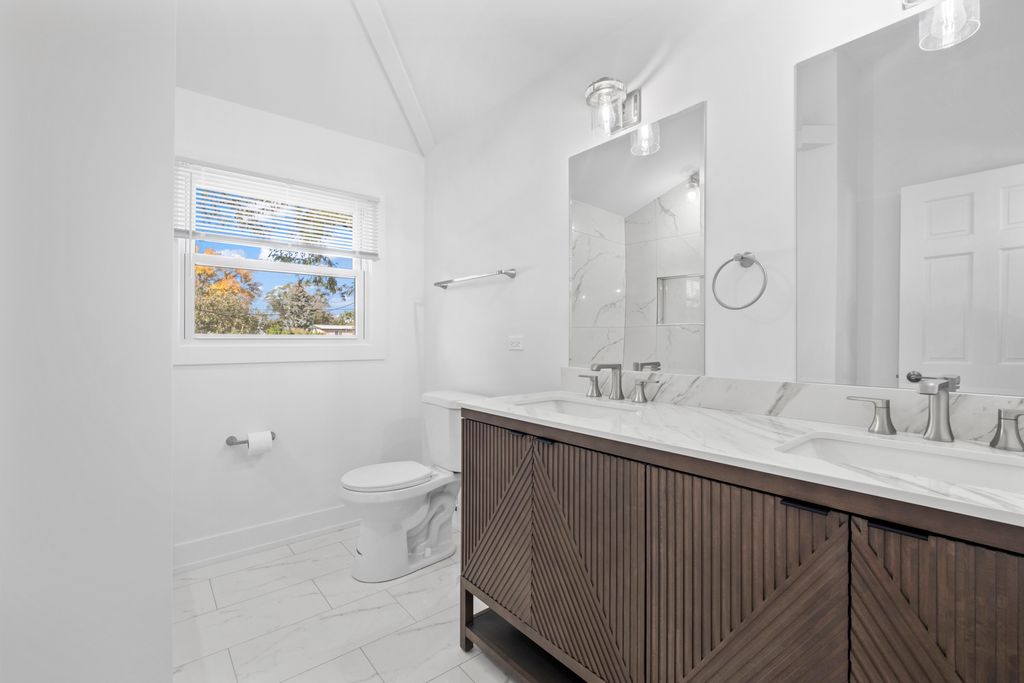 Welcome to this breathtaking 3-bedroom, 2-bath home in the heart of Worth, Illinois-absolutely renovated from top to bottom and move-in ready! Every inch of this property has been updated with exceptional attention to detail, offering the perfect combination of modern elegance, quality craftsmanship, and everyday comfort. Step inside to discover a bright and open floor plan where sunlight floods through newer windows, reflecting beautifully off the gorgeous wood floors that run seamlessly throughout the entire home. The spacious living room flows effortlessly into the dining area and the stunning new kitchen-an entertainer's dream! The kitchen is a true showstopper, featuring granite countertops, stainless-steel appliances, stylish tile backsplash, and tons of cabinet space for all your storage needs. Whether you're cooking for family, hosting friends, or enjoying a quiet morning coffee, this kitchen will make every moment special. The home boasts two completely brand-new bathrooms , each designed with sleek modern finishes, designer fixtures, and custom tile-work that brings a sense of luxury and calm. Every space feels fresh, functional, and beautifully appointed. All three bedrooms are generously sized with ample closet space and beautiful natural light-perfect for relaxation or working from home. Step outside and prepare to be impressed by the oversized backyard, perfect for outdoor entertaining, gardening, or simply unwinding. The huge deck provides plenty of room for grilling, dining, and enjoying long summer evenings. The brand-new asphalt driveway accommodates up to eight cars, providing both convenience and curb appeal. Major improvements have been completed for peace of mind, including a 2024 roof, 2024 AC unit, newer windows, and a full renovation throughout. Just move right in and start living your best life-no projects, no stress, just comfort and style. Located on a quiet residential street yet close to everything, this home offers the ideal balance of tranquility and convenience. Enjoy being minutes from local parks, playgrounds, and one of the area's best golf courses, as well as shopping, dining, schools, and transportation options. Worth's charming small-town feel and easy access to the city using Metra train, make this a perfect location for anyone seeking the best of both worlds. This home truly has it all-modern updates, top-to-bottom renovation, large lot, parking for guests, and a peaceful neighborhood setting. Whether you're a first-time buyer or simply looking for a move-in-ready property with all the upgrades already done, you'll fall in love the moment you arrive. Don't miss your opportunity to own this breathtaking 3-bedroom, 2-bath Worth home. Every element has been carefully designed for comfort, style, and lasting value. Schedule your private showing today and experience firsthand why this property stands out above the rest!