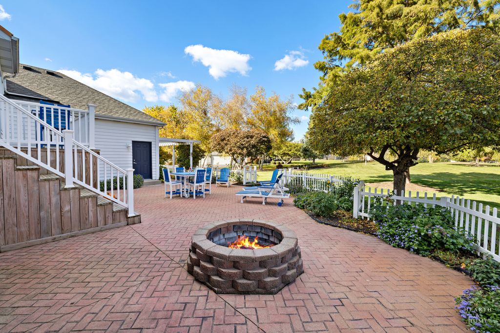 Welcome to this beautifully crafted custom home in the sought-after Chalet Hills Golf Course Estates community! Perfectly positioned on a corner lot across from a quiet neighborhood park, it charms from the start with a wraparound porch, professional landscaping, and timeless curb appeal. Step inside to discover hardwood floors, a freshly painted interior, and abundant natural light streaming through premium Pella windows. The bright, open layout features a chef's kitchen with white cabinetry, quartz countertops, double oven, cooktop range, island seating, a walk-in pantry, and a sunny breakfast nook. The family room is warm and inviting with a brick fireplace and walls of windows showcasing the scenic views. Formal living and dining rooms offer elegant entertaining spaces, while the main-level office with custom built-ins can flex as a fifth bedroom or workspace. Upstairs, unwind in the primary suite with a separate sitting area, walk-in closet, and spa-like bath featuring a freestanding tub and designer shower. Three more bedrooms each with a walk-in closet share a dual vanity hall bath with standing shower and tub. A third-floor attic space is ready to be finished-perfect for a playroom, studio, or guest suite. The full English basement, filled with natural light and roughed in for a bathroom, offers endless potential to create a recreation area, media room, or additional living space. Outdoor living is just as inviting with a stamped concrete patio, deck, colorful perennial gardens, and a firepit. Equipped with dual-zoned HVAC, newer furnaces and A/C units, two 50-gallon water heaters, a recently painted exterior and interior. Meticulously cared for and truly a must-see!