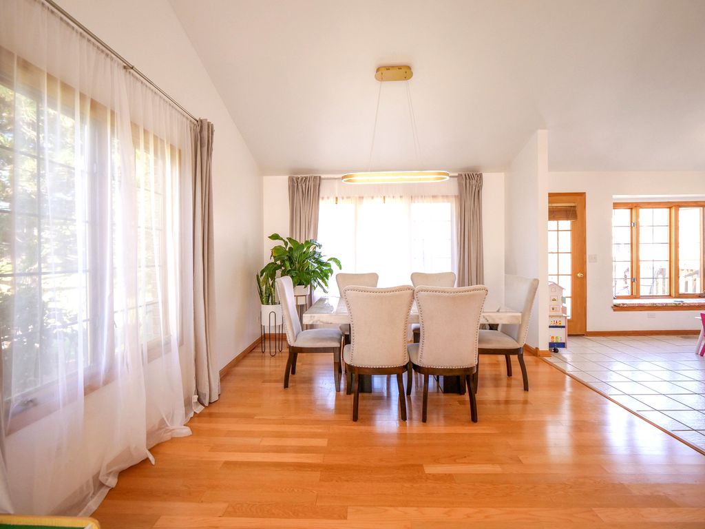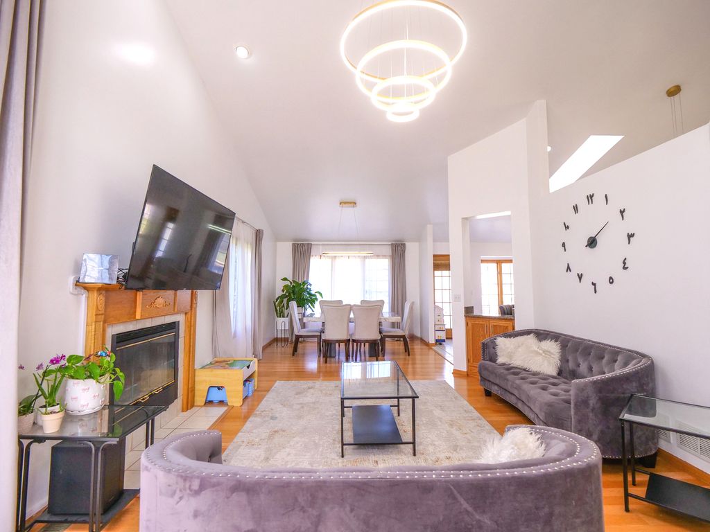 Modern aesthetics combined with timeless Cozy charm! This beautiful 4 bedroom total, 2 Bathroom end-unit Townhome in Tinley Park offers beautiful quiet living in an easy to access location less than 5 minutes from I-80, Illinois Rt. 43, and the 80th avenue Tinley park train station. This home offers a fantastic opportunity for travel convenience and amenities, while also being tucked from the busy bustle. Step inside the 3200+ livable sq ft. to an impressive open-concept main level highlighted by 20ft vaulted ceilings that enhance natural light and create a grand sense of space throughout. On the main floor there is a gas fireplace, and beautiful Low-emissivity energy efficient windows accented with luscious blinds and drapes that stay with the home. As you walk through the home, you will find wood and tile flooring, along contemporary styling. The expansive master bedroom features a walk in closet! Updates include 2 year old appliances that stay, and recent modern light fixtures! A newly constructed deck with extendable awning extends the living area outdoors, offering a perfect spot for morning coffee or evening gatherings; and being an end unit town-home surrounded by trees and arborvitae, offers more privacy than other units. The full finished basement nearly doubles the living area, offering two additional bedrooms, expanded recreational space, and endless versatility for a home office, media room, or guest suite. Practical comforts include a newer furnace and air conditioning system installed around 2020, and The attached 2.5-car garage adds valuable storage and functionality This home combines a luxury modern aesthetic with thoughtful amenities and abundant living space in a great location. Schedule a private tour and discover why this exceptional end-unit residence truly stands apart from the others! So Beautiful! For HOA info, please ask your agent to look at private remarks