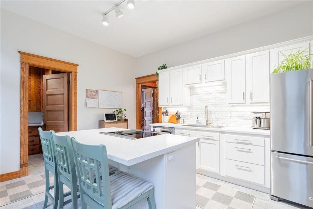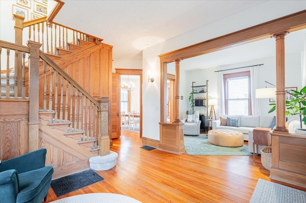 Step inside this beautifully preserved historic home and fall in love with its timeless character, warm details, and thoughtful updates. From the inviting front porch to the original woodwork and rich architectural accents, this home perfectly blends old-world charm with today's conveniences. The updated kitchen (2021) is both stylish and functional, featuring modern finishes and ample space for cooking and entertaining and gorgeous pantry. The bathrooms have been tastefully updated while honoring the home's vintage aesthetic. Upstairs, you'll find a spacious laundry room with ample storage space, plus a finished attic with its own mini split system, providing heated and cooled space ideal for a home office, playroom, or cozy retreat. Every room tells a story here, offering comfort, character, and a sense of history that's hard to find. Conveniently located near downtown Bloomington, parks, and schools, this home is ready to welcome its next chapter.
