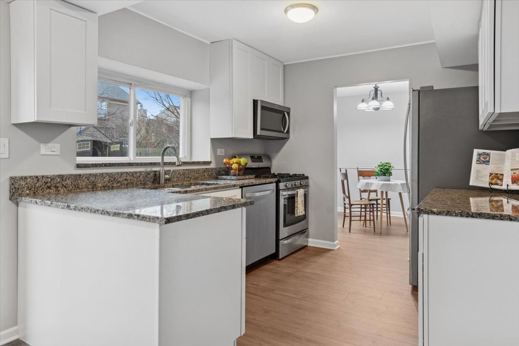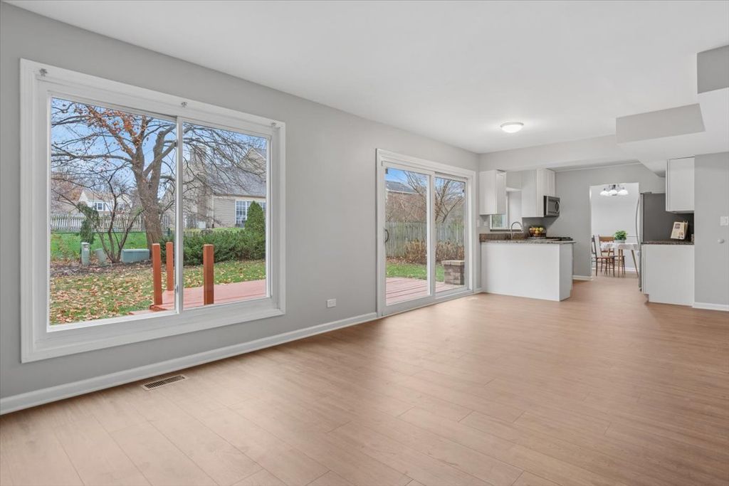 Located in a highly desirable neighborhood, this beautifully updated home provides an ideal combination of comfort and convenience with no HOA! Greet visitors on the inviting front porch surrounded by curb appeal. The open layout includes an updated kitchen with granite countertops, stainless steel appliances and soft-close cabinets, a deep window ledge for your plants, peninsula, eating area with sliding glass door to the backyard, and spacious family room. Gather with friends & family in the lovely dining and living rooms. Half bath also on first floor. New AC4 laminate flooring on entire main level! Upstairs, you will find three spacious bedrooms, a laundry area, and a full bathroom. The primary bedroom includes a large walk-in closet. New carpet on entire upstairs! New paint throughout entire home! The fully fenced, landscaped, private backyard is delightful! It has a large deck and paver patio for entertaining, and a shed. Two car attached garage. Beautiful subdivision with no HOA and Dist. 204 Schools: McCarty ES (within subdivision!), Fischer MS, Waubonsie Valley HS. NEARBY: Rush Copley Medical Center & Hospital, Phillips Park (lake, zoo, golf course & aquatic center), Waubonsie Creek Trail, Eola Community Center & Library (take the pedestrian bridge!), and 4 Parks within 1 mile! Close to Rt 59 Train Station (4.5 miles), I-88, Restaurants and Shopping. UPDATES: 2025 Kitchen cabinets, AC4 waterproof laminate flooring on main floor, Carpet upstairs, Paint throughout, Deck maintenance and paint, Insulated thermal panes added to windows. 2021 Driveway complete new pour, 2019 Water heater, 2018 Radon system, and much more! See additional information for a full list, including features and area information! Welcome home!