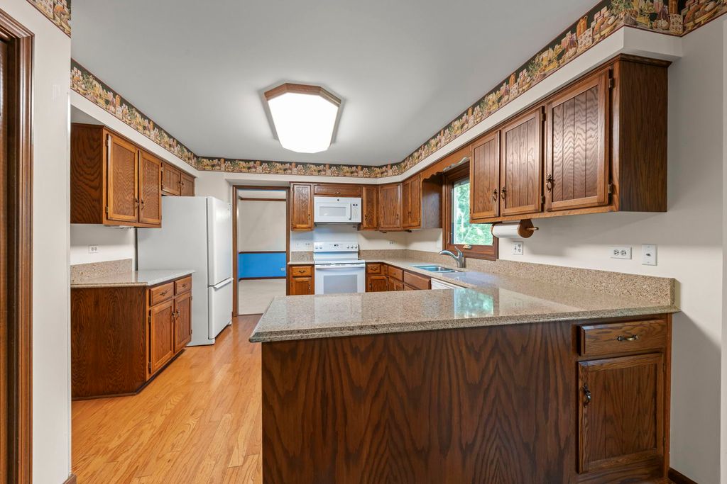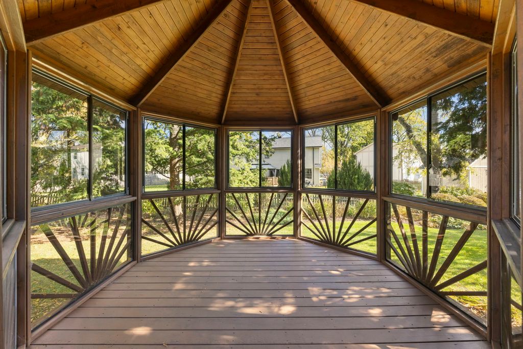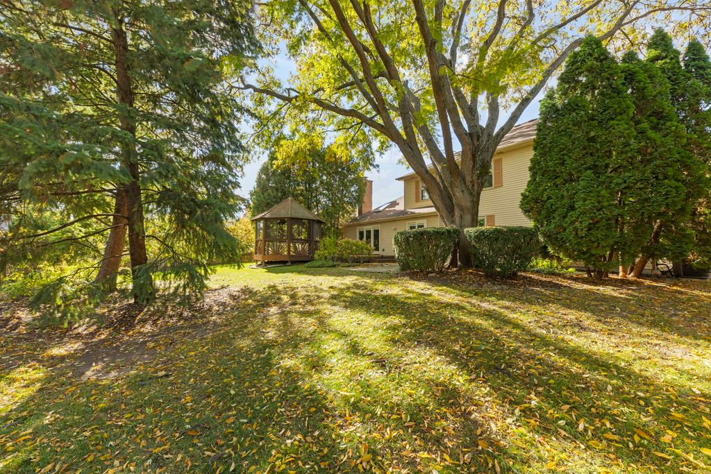 Discover the incredible charm of Winding Creek Subdivision from this home nestled on a mature, beautiful lot! The rooms are all spacious and each welcomes your ideas and can accommodate your needs. The generously sized Living Room and separate Dining Room provide a fantastic area for gatherings and entertaining. You will appreciate the first floor Den with its full wall of built-in shelves. The eat-in Kitchen has ample quartz counter space, plenty of cabinets and direct access to the deck. The Family Room features a brick masonry fireplace embraced by book cases, that encourages a relaxing and cozy atmosphere plus a skylight in the vaulted ceiling that opens up the whole room. The huge Master Bedroom Suite has a WIC, a full bath that includes double sinks and a fantastic walk-in shower! Bedroom 2 also has a WIC. Bedrooms 3 and 4 are generous in size. There is a full Basement with a storage area and workbench, just waiting for you to finish! This home can boast about its gorgeous backyard complete with stately trees, TimberTech deck, beautiful entertaining Gazebo with lower window panels, 3/4 fence and 11 zone sprinkler system. Improvements on home include: tear-off roof 2011; windows installed in entire house 2012; water heater 2020; replaced driveway 2022; replaced furnace and A/C 2024; radon mitigation system. The owners of 28 years are leaving you a solid home that has maintenance done on a regular basis! This home is pet free and smoke free. Excellent location to Naperville's Award Winning schools, shopping, Naperville's amenities, parks and the list goes on and on! This is the one!