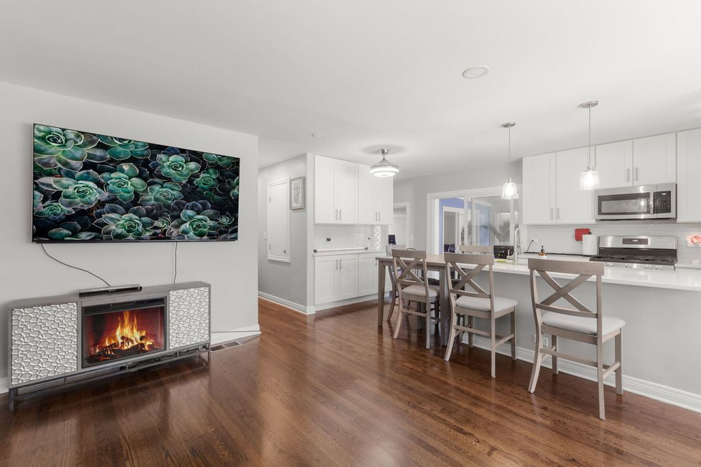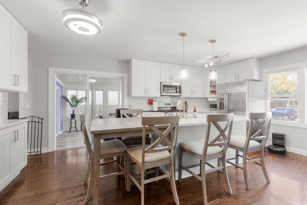 Welcome to this beautifully rehabbed 4-bedroom, 2-bath single-family home located in the heart of Northbrook. Offering a seamless blend of modern upgrades and timeless charm, this home is a true gem. Step inside to discover a spacious open layout, featuring refinished hardwood floors throughout and an abundance of natural light that flows into every room. The gourmet kitchen is a standout with sleek quartz countertops, brand-new stainless steel appliances, and upgraded cabinetry. The elegant glass subway tile backsplash adds a touch of sophistication, while the breakfast bar provides the perfect spot for casual dining or entertaining. Adjacent to the kitchen, the inviting family room offers a cozy space to relax and unwind, with easy access to the large, fully finished basement. Entertaining is a breeze in the newly added dining room. Three bedrooms and and a full bath with dual vanities are located down the main hallway. The versatile lower level includes an additional bedroom and bathroom, a spacious den, plenty of storage, and a huge entertainment area - ideal for hosting family and friends. The home also boasts new windows throughout, ensuring energy efficiency and year-round comfort. Step outside and enjoy the new maintenance free deck with direct access to the local bike path, perfect for a quick ride to nearby Skokie Blvd. for shopping, dining, and more - including Mariano's and Trader Joe's! A new asphalt driveway offers ample parking. With a prime location, award winning schools, stunning updates, and ample living space, this home is truly a must-see.