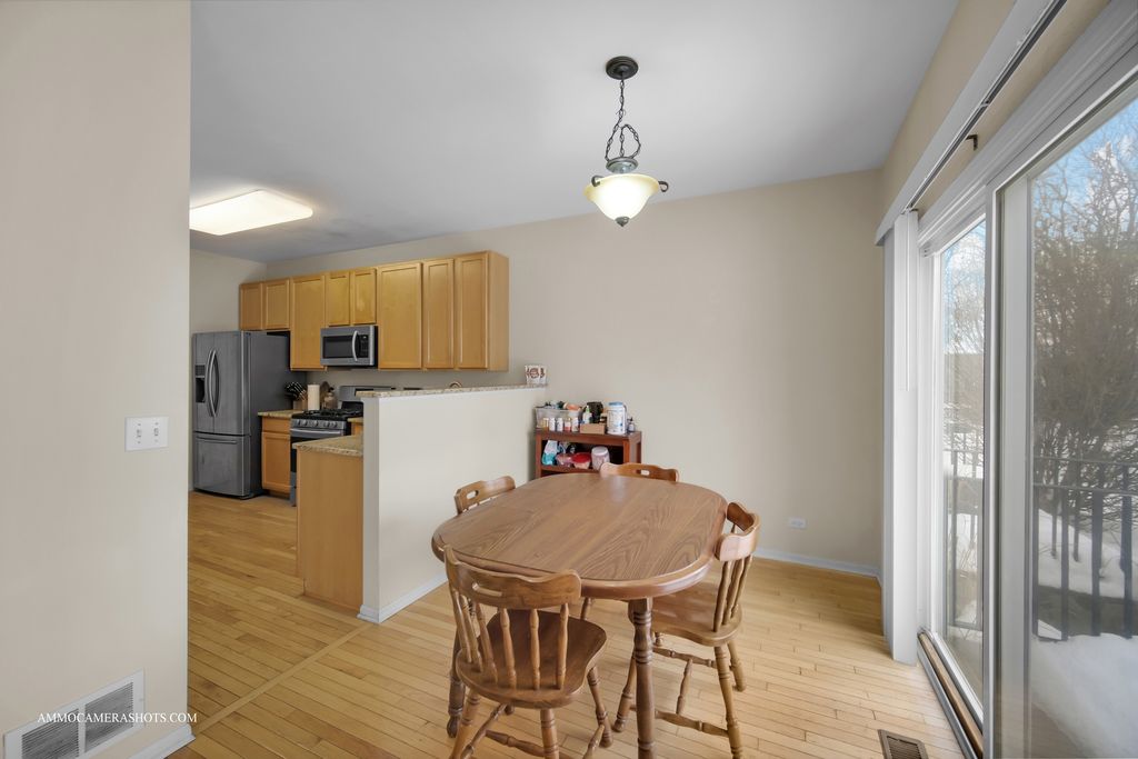 Welcome to this bright and spacious 3-bedroom, 2.5-bath townhome featuring a perfect blend of comfort and style. The home boasts hardwood floors, fresh paint, and an inviting open floor plan filled with natural light. The modern kitchen includes stainless steel appliances, granite countertops, and ample cabinet space-ideal for everyday cooking or entertaining. The second-floor primary bedroom offers convenience and privacy, while two additional bedrooms provide flexibility for family, guests, or a home office. Enjoy the added benefit of a second-floor laundry room and volume ceilings that enhance the home's spacious feel. The full finished basement offers additional living space, perfect for a recreation area, gym, or storage. A 2-car garage provides ample parking and convenience. Located just minutes from the Metra train station, I-88, and Fox Valley Mall, this home offers easy access to shopping, dining, and commuting. A fantastic opportunity to own a move-in-ready home in one of the area's most sought-after neighborhoods!