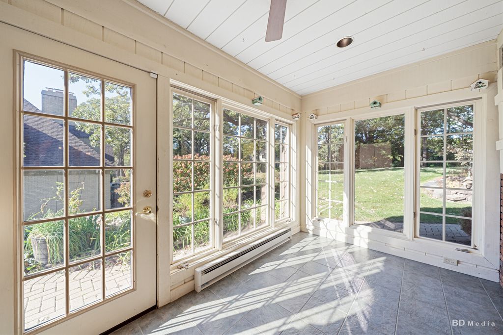 Welcome home! This meticulously kept classic cape cod is situated on almost an acre in a private cul-de-sac location in the highly sought after Prestwick Subdivision. It is nestled among over 200 year-old oak trees, professional landscaping with sprinkler system and updated lighting, gorgeous gardens, brick paver patio with built in gas grill. Imagine coming home to this amazing property that sits back off the road with an asphalt drive leading to the oversized, heated 2.5 car garage with epoxy flooring. As you enter the home, you are welcomed with an open concept family, dining, and four season room with windows in every direction allowing in the most beautiful natural lighting at every corner. Dentiled crown molding, gorgeous hardwood floors and two fireplaces for ultimate relaxation and entertaining. The kitchen is a chef's dream with granite countertops, large island, built in buffet for those large serving platters and two ovens to maximize all your holiday hosting. There is a main level laundry room, mudroom and best of all, a primary bedroom with completely updated suite with heated floors and thermostat, rain shower, handheld sprayer with bench and double vanity. The soaring two-story foyer leads you to 2 additional bedrooms with a jack and jill bathroom with two sets of vanities. The large, open office has a peaked ceiling, amazing windows, hardwood floors and could be used as a 4th bedroom. The attic access is through the second floor bedroom closet and has an enormous amount of potential. Just imagine the possibilities of finishing this space. The lower level is finished with a wet bar, rec room area, workspace and utility room. Large crawl space is available for even more storage. This beautiful home is in great condition, however, it is being sold As-is.