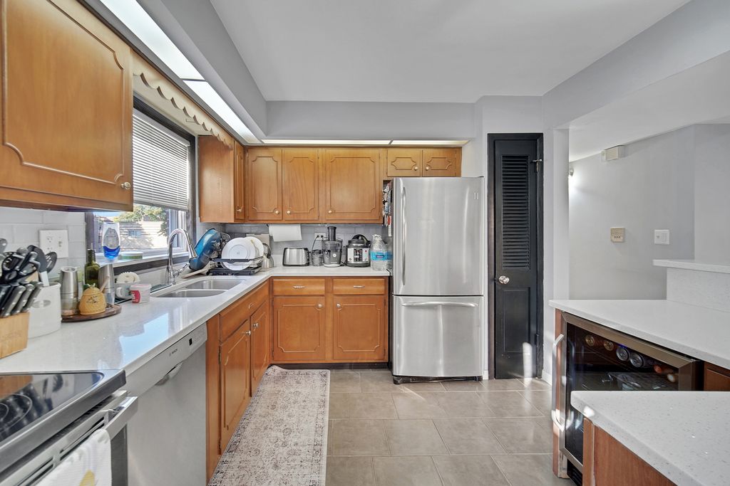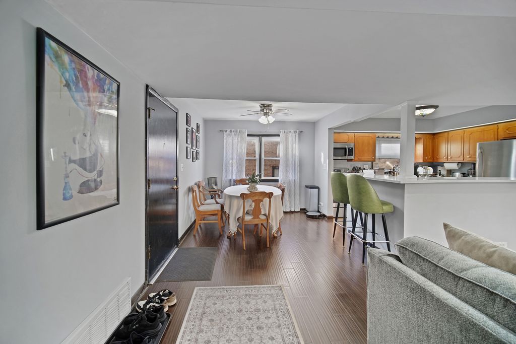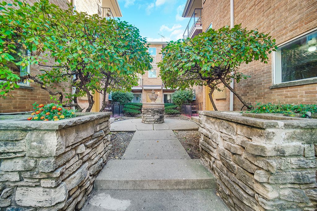 Discover this beautifully maintained, gated courtyard building where your next home awaits. This spacious 2 bedroom, 1.5 bathroom condo offers comfort and style. Unit has wood laminate floors throughout. The kitchen has new quartz countertops, stainless steel appliances (including new stove), brown cabinets, pantry and your personal breakfast bar for when family and friends come over. The living room is inviting and connects to your private balcony! Separate dining area. The primary bedroom offers a walk-in closet and a private half bath, while the second bedroom makes a great home office or guest space. Additional highlights include a new water heater, central A/C and forced-air heat, and fresh paint throughout. Exterior parking space included. Coin laundry and storage in the basement. Located with easy access to the Blue Line, Metra, 90/94, and within walking distance to Old Irving Brewing Co, parks, restaurants, shopping, and schools. No rentals allowed.