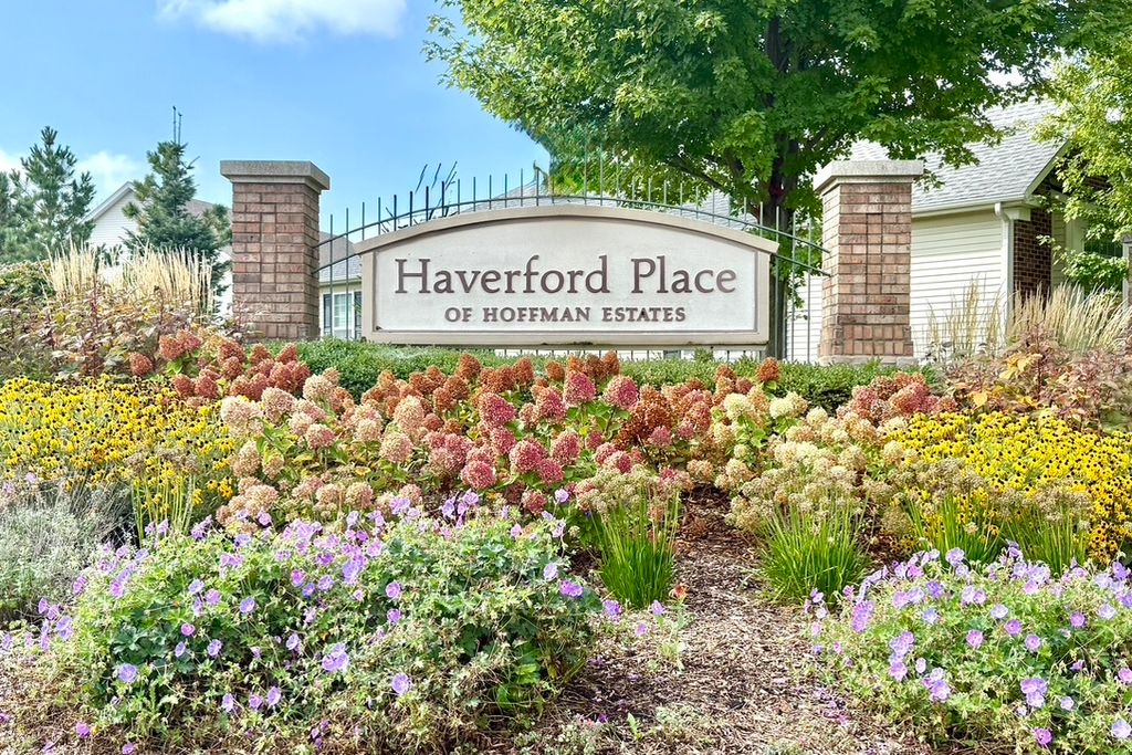 Welcome to Haverford Place, a highly sought-after 55+ community in Hoffman Estates! This spacious and inviting 2-bedroom, 3-bath ranch offers comfortable one-level living with a full unfinished basement featuring a finished full bath. Thoughtfully designed for both everyday living and entertaining, the home features a welcoming front porch, open layout with diagonal wood flooring, and a custom built-in butler's cabinet. The kitchen includes newer black stainless steel appliances: gas range, microwave, and dishwasher. Enjoy the outdoors on the newer Trex composite deck (2017) with a Pella patio door (2017), perfect for relaxing or hosting guests. The spacious primary suite includes a generous walk-in closet and a private bath with a separate soaking tub and shower. The full unfinished basement provides abundant storage, a finished third full bath, and endless possibilities for hobbies, a workshop, or future living space. Additional updates include HVAC (2023) and water heater (2025). An attached two-car garage adds convenience and extra storage. Residents of Haverford Place enjoy a vibrant lifestyle with amenities including a clubhouse, pool, jacuzzi, tennis and pickleball courts, walking trails, and year-round social activities. The HOA covers lawn care, snow removal, and exterior maintenance, allowing you to focus on what matters most, enjoying life! Fantastic location close to shopping, restaurants, and easy highway access. Home is being conveyed as-is. Don't miss the chance to make this exceptional ranch your own. Homes in this community go fast!
