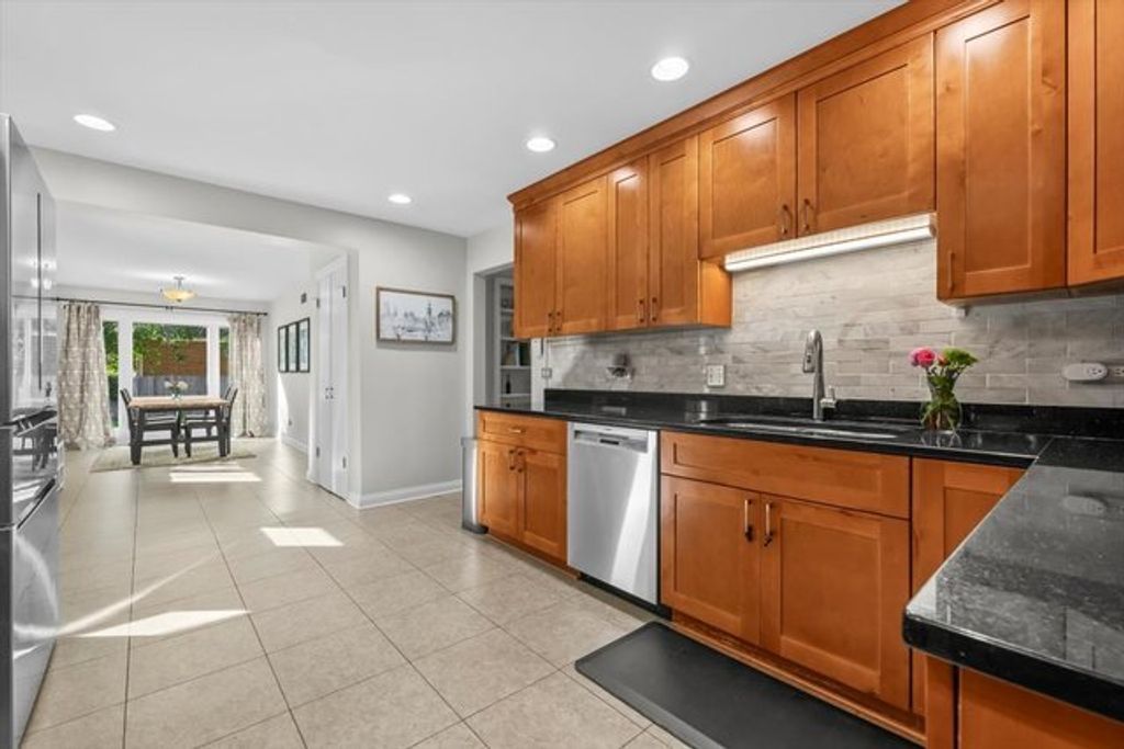 Charming, move-in ready brick ranch in coveted location close to town, train (Highlands stop), Whole Foods, Starbucks and The Lane Elementary School - ranked #4 in the state! Fabulous layout with perfect flow for both everyday living and effortless entertaining. The large kitchen is the heart of the home and boasts loads of neutral cabinetry, granite countertops, stainless steel appliances (including newer fridge and dishwasher), plus pantry. The adjoining sunny eating area has walls of windows and is the perfect gathering place. Just off the kitchen/breakfast area is the fabulous family room with original shelving to display your treasured photos, plus sliders for easy access to the patio and lovely fenced in backyard. Pocket doors are there to separate the family room from the dining room, if desired. The dining room is a beautiful space to accommodate celebrations, and its openness to both the family room and cozy living room/sitting area with wood burning fireplace allows for expansion for larger gatherings. The main level also has 3 spacious bedrooms with great, organized closet space plus one full and one half bath. Exceptional finished lower level with LVT flooring offers additional play/work space, 4th bedroom and 2nd full bath, laundry room with newer washer and dryer (2020) and storage. Other highlights include: hardwood floors, newer roof (2020), updated windows, neutral window treatments...and so much more! Warm, welcoming and beautifully maintained...this home is truly turn-key!