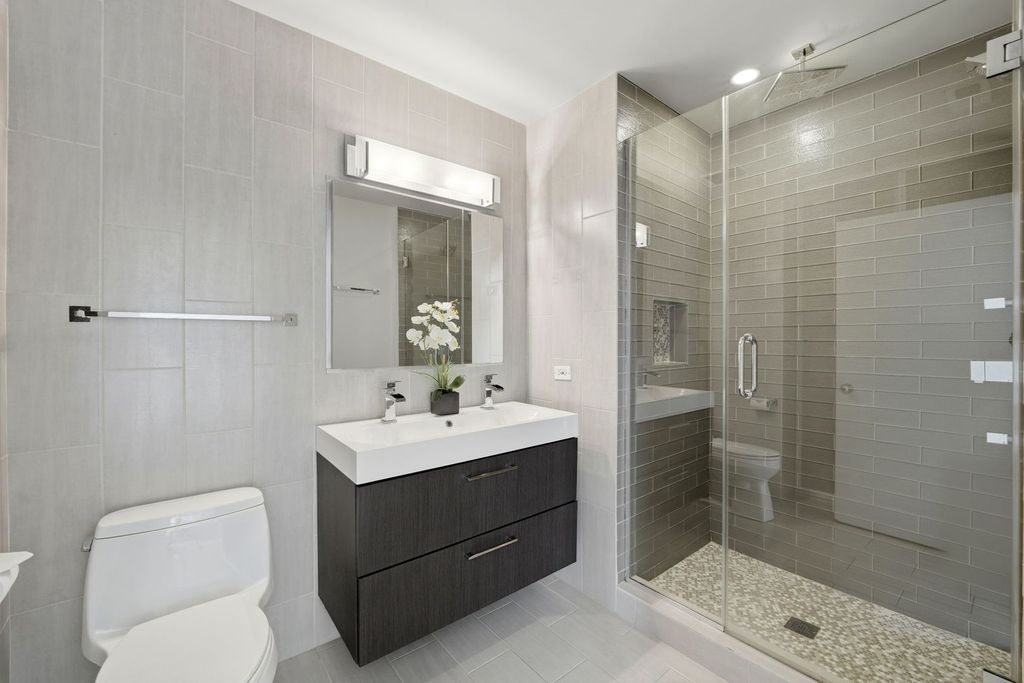 Experience luxury living in this newly renovated 2 bed, 2 bath corner-unit located in the heart of West Loop. The unit was recently upgraded with brand new wood flooring, kitchen appliances, power blinds and paint throughout, so there's nothing left to do but move in and call it yours! The open concept living and dining area feels open and airy with 10' ceilings and tons of natural light coming in from the floor to ceiling windows. The space includes a gas log fireplace and built-in wine fridge, and flows seamlessly into the sizable kitchen, which includes updated appliances, plenty of counter space and barstool seating for three. The real show stopper is the incredible 800+ square foot wrap around terrace with incredible city skyline views and more than enough space for both a dining and seating area set up. Enjoy the perks of indoor/outdoor living with access to the terrace from the primary bedroom and living room area. The options to create your outdoor oasis are endless with this space! In addition, the unit includes a large primary suite with lots of light, a walk-in closet and a large, updated primary bathroom with a double vanity, radiant heating and walk-in shower. The second bedroom off the living space gets tons of natural light and would make for a great guest bedroom or office set-up. Additional features include one heated garage space and an additional storage locker, both easily accessible via elevators. Step outside and you're steps away from world-class restaurants, cafes, shopping and easy access to downtown and the interstate. A quick walk to Fulton Market, Whole Foods, Marianos, Mary Park and Ogilvie Metra stop. Urban living at its finest!