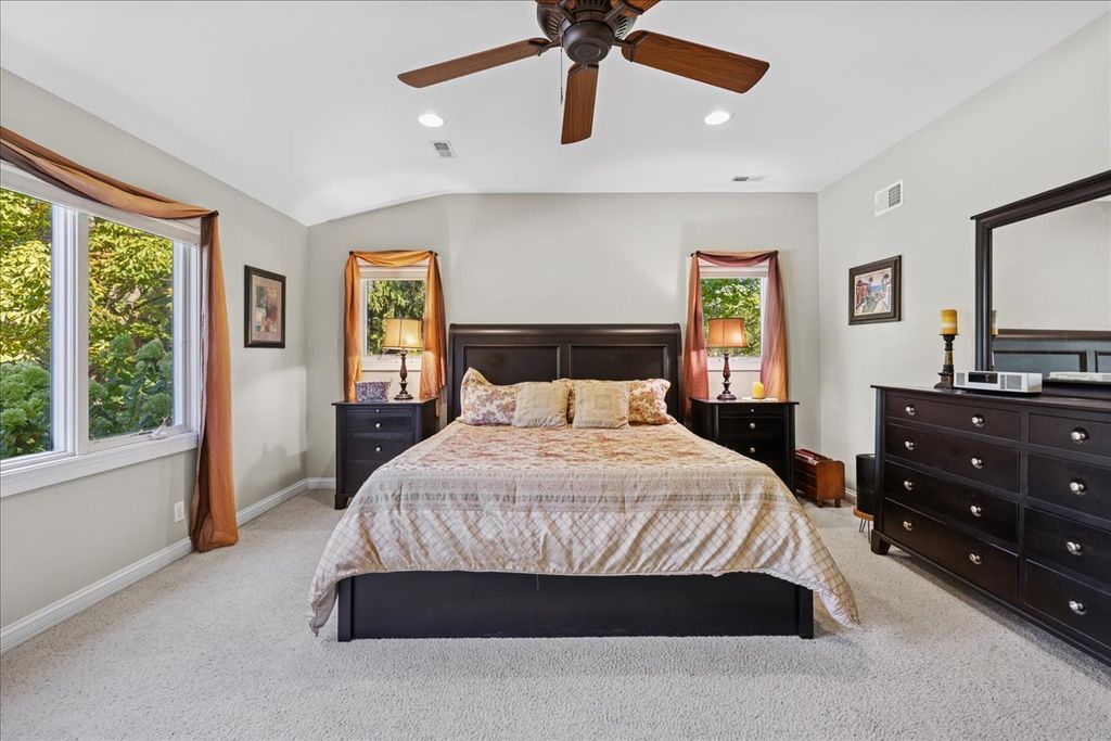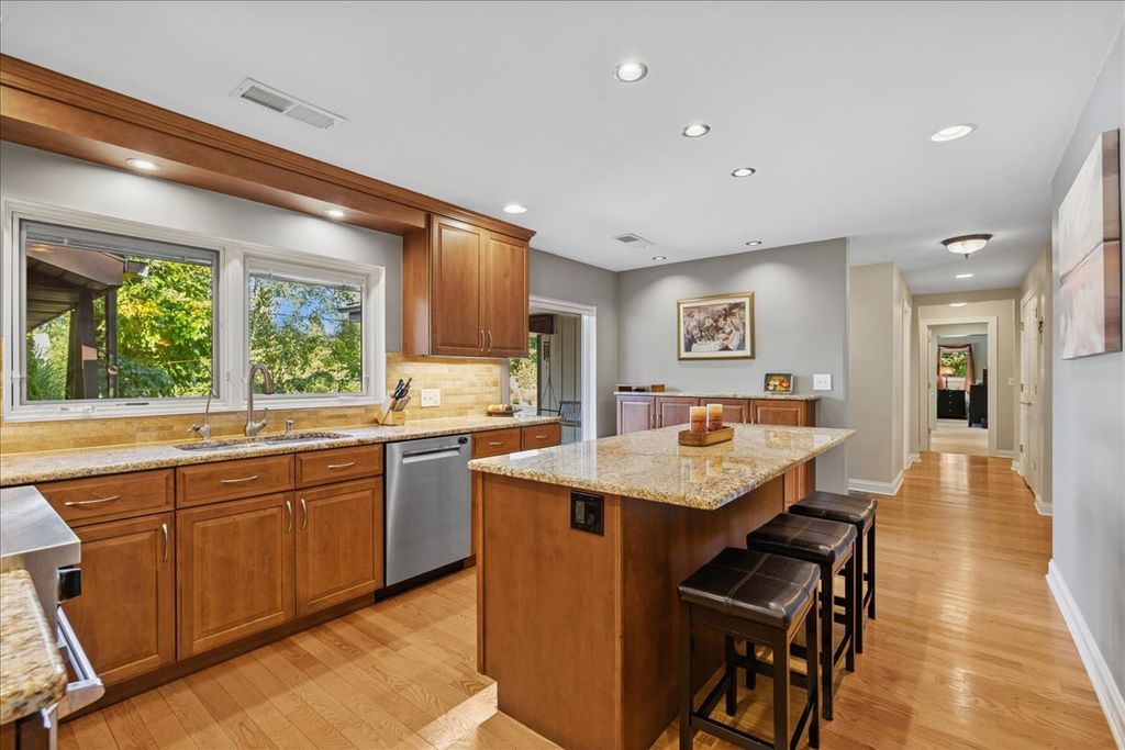 Nestled within one of Vernon Hills' best-kept secrets, Woodbine Circle. This remarkable ranch sits on over an acre of land and blends timeless style with modern convenience. With countless updates and located within the highly rated Stevenson High School and District 103 boundaries, this home is an exceptional find. From the moment you arrive, the property makes a lasting impression. A circular driveway winds gracefully to the home, enhanced by paver brick accents, a brand-new roof and professional landscaping. As you step into the foyer, you're greeted by an awe-inspiring living space where an entire wall of sliding glass doors invites the outdoors in. Sunlight pours through the glass, filling the room with a warm, golden glow while framing picturesque views of the expansive backyard, creating a seamless connection between indoor comfort and outdoor beauty. The dining room adds warmth and character with its cozy wood-burning fireplace. An incredible chef's kitchen is designed for both style and function, featuring 42-inch cabinetry, gleaming granite countertops, a large island, stainless steel appliances, and a double oven. Whether preparing daily meals or hosting, it is a space that inspires. The primary suite feels like a true retreat. A tray ceiling and spacious walk-in closet set the tone, while the spa-like bathroom elevates everyday living with dual vanities, a soaking tub, heated floors, and a luxurious walk-in steam shower. A second ensuite bedroom offers privacy and comfort for guests, while two additional bedrooms share another full bathroom. For those working from home, the private office provides a perfect setting with French doors, recessed lighting and new carpeting. A versatile flex room adds even more possibilities-whether used as a game room, recreation space, or even a fifth bedroom. Throughout the home, thoughtful details such as solid core doors, updated trim and crown molding and Pella sliding doors and windows reflect quality craftsmanship. Practicality is seamlessly paired with peace of mind thanks to a whole-house 22KW Generac generator and an in-ground front yard sprinkler system. Outside, the backyard provides an entertainer's dream and/or a private retreat, offering endless opportunities to gather, play, or simply enjoy the beauty of nature. Recent updates include a new roof and gutters (2025), Frigidaire Pro refrigerator (2025), Bosch dishwasher (2025), A/C condenser (2023), two hot water heaters (2021), and a furnace with Aprilaire humidifier & UV light cleaner (2020). Close to endless shopping, dining, entertainment and so much more! Blending thoughtful updates, modern comfort, and a setting that balances privacy with convenience, this beautifully maintained ranch is a rare opportunity in an unbeatable Vernon Hills location!