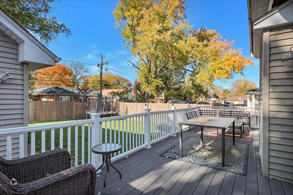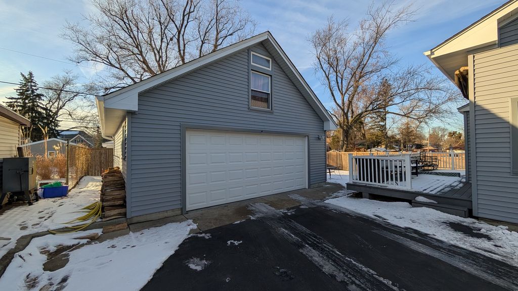 Enjoy this beautifully maintained home starting with the inviting, low-maintenance composite front porch overlooking a peaceful, tree-lined street. For a more private retreat, head to the back deck and relax under the retractable sun awning as the sun sets in the west over your fenced backyard. Enjoy peace of mind with **brand-new siding and gutters**. Inside, the warm and welcoming living room offers tray ceilings and recessed lighting. The main-floor bedroom, tucked privately off the hall with an adjacent full bath, provides excellent flexibility for guests or related living. Six panel doors and custom millwork adds charm throughout the home. The **open-concept kitchen** features tray ceilings, recessed lighting, granite counters, a full pantry, stainless steel appliances, cooktop with floating exhaust hood, two ovens, and a built-in bench and dining area beyond the bar-height peninsula. Off the kitchen, you'll find the **grand family room**, showcasing an exposed 24-foot beam, vaulted ceiling, built-in surround sound and entertainment system cabinetry, up lighting, and dual sliding doors leading to the backyard. Upstairs, a spacious lofted hallway with solar tube natural light overlooks the family room and offers the perfect space for a home office, library, or reading nook. The **primary suite** features a walk-in closet and a full bath with a separate jetted tub and shower. Two more large bedrooms, a third full bath, and a laundry room with a central vacuum system complete the upper level. For year-round comfort and energy efficiency, the home features **dual-zoned HVAC systems** , **two water heaters**, and **200 amp electrical service**. Home and garage roof replaced in 2021. The property includes an insulated and heated **two-car detached garage** featuring dual overhead doors, a built-in air compressor, and a walk-up loft-perfect for parking, hobbies, or additional storage. There's also a **one-car attached garage** with epoxy floors for added convenience. Two blink cameras, ADT security system, and a whole house intercom provide further peace of mind. Ideally located near expressways, shopping, restaurants, breweries, walking trails, and just one block from a state-of-the-art park district featuring disc golf, a fishing and boating pond, and an expansive athletic center. Schedule your showing today! *Last three photos show new siding and gutters installed 12/31/25.