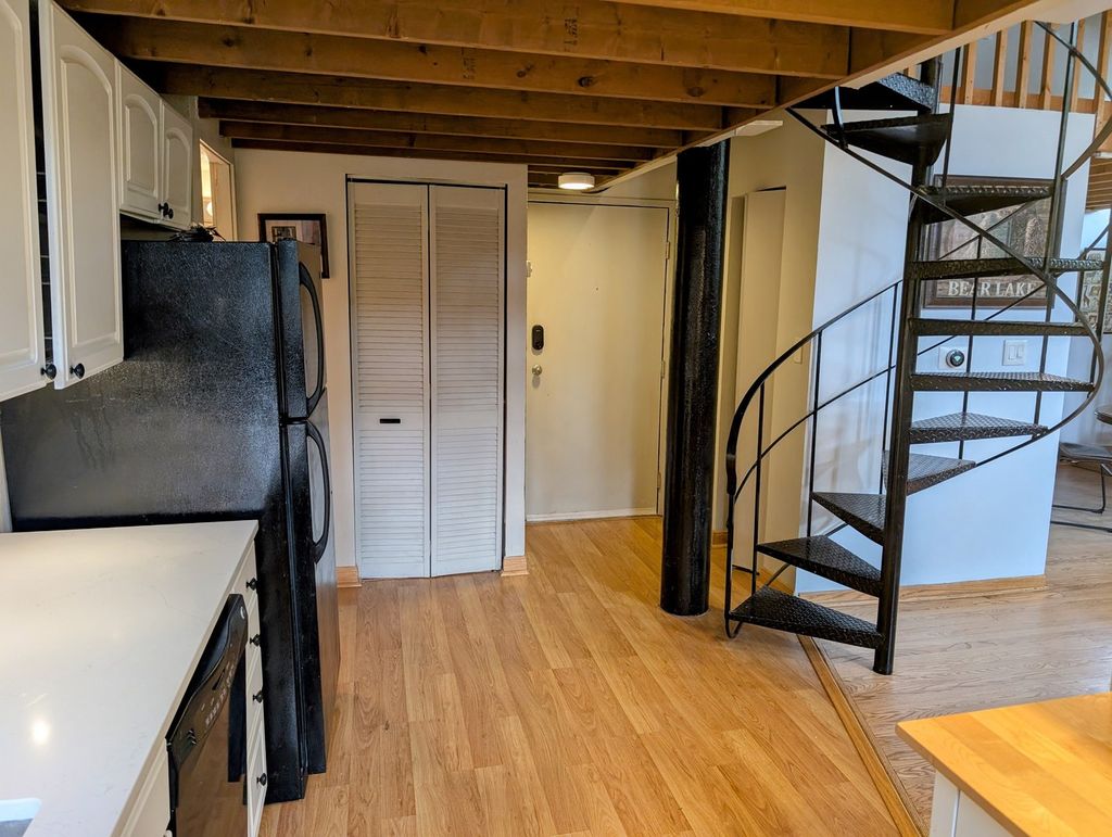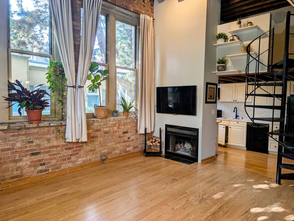 Welcome to this charming and unique corner unit loft featuring soaring ceilings and oversized windows. Lots of sunlight from south exposure and views to the lovely and well-maintained courtyard. Spacious main level with wood burning fireplace in living area (hardwood floor just got re-finished!), separate dining area, and two loft areas above. Nicely sized kitchen with window and updated quartz countertop. The historic Wheelworks building provides assigned storage in basement, a shared roof deck with amazing city views, bike room, courtyard garden w/ grill and Butterfly video intercom system. The location does not get much better than this! The 60614 is one of Chicago's most desirable areas, surrounded by beautiful homes, parks, restaurants (Avli around the corner), public transportation, DePaul, etc. Home warranty offered for the first year. Come check this unit for your next home or make it an investment in this outstanding Lincoln Park location