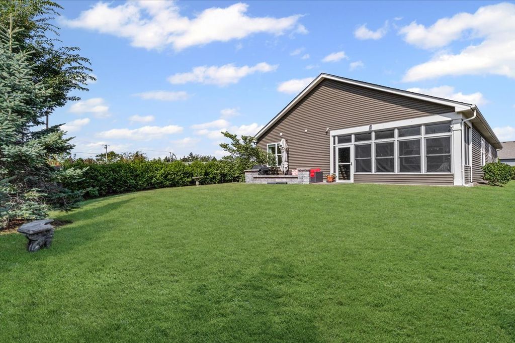 This inviting corner ranch, built in 2018, offers the ease of single-story living in the desirable Wentworth neighborhood of Gurnee. With 2 bedrooms plus a versatile den/flex room, the home provides options for a private office, nursery, or hobby space. The open floor plan creates a seamless flow between the living, dining, and kitchen areas, filled with natural light from large windows and sliding doors. The kitchen is a true centerpiece, featuring a generous island and walk-in pantry, while the adjacent laundry room adds everyday convenience. The spacious primary suite is a retreat of its own, boasting a luxurious bath with double vanity, soaking tub, separate shower, and an enviable 10x12 walk-in closet, plus an additional smaller walk-in closet for even more storage. A three-season room opens to a block-paver patio and tree-dotted yard, perfect for both quiet mornings and relaxed entertaining.Additional highlights include a 2-car garage and the low-maintenance lifestyle provided by the HOA, covering landscaping and snow removal. Ideally located just 2 miles from shopping, dining, Gurnee Mills, and highways 94 and 120, this move-in ready home combines comfort, privacy, and convenience in a welcoming community.