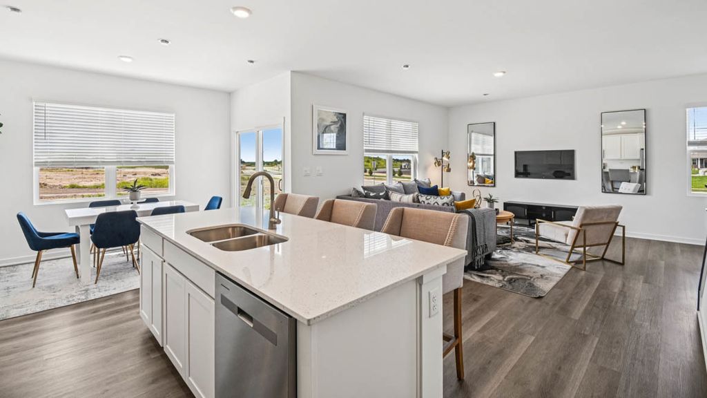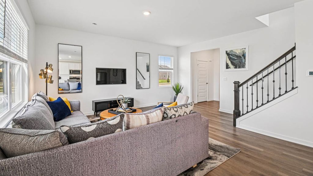 Discover yourself at 7051 Oakmont Road in Mount Pleasant, WI, a new single family home in D.R. Horton, America's Builder, Pike River Crossing community, located right off Green Bay Road, close to shopping, dining and easy access to route 94! This home is ready for a quick move-in! Homesite includes a fully sodded and landscaped yard. The Sloan floor plan features an open-concept living and dining area, with the dining room bumped out next to the kitchen, featuring large windows and a sliding glass door, and partial basement. The kitchen boasts 42" soft-close designer cabinets with crown molding, quartz countertops, a pantry, and a spacious island. Oak railings lead to the second floor, where you'll find four bedrooms, two full bathrooms, and a convenient upstairs laundry room. With modern finishes and a functional layout, this home is perfect for family living and entertaining. Enjoy your large primary bedroom with a walk-in closet and connecting en suite bathroom. The rest of the upper level features a laundry room, secondary bedrooms with a full second bath, and linen closet. You'll find luxury vinyl plank flooring throughout the main level living space, bathrooms, and laundry. Impressive innovative ERV furnace system and a 45 gallon water heater round out the amazing features this home has to offer! Photos are of similar home and model home. Actual home built may vary.