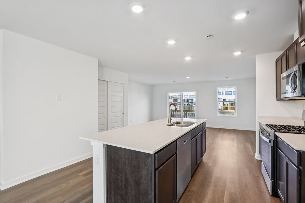 Find yourself at 889 Briar Glen in Hampshire, Illinois, a beautiful new home in our Prairie Ridge community. This townhome have an Early New Year Delivery! Homesite includes a fully sodded yard that is maintained throughout the year as well as snow removal in the winter. The Garfield townhome plan offers 1,756 square feet of living space with 3 bedrooms 2.5 baths, and a finished bonus room. Walking up to the main level, you will find this home's open concept living space. The expansive kitchen overlooks both the front dining and back great room areas, making it the ideal space to entertain. Step outside onto your balcony, relax and enjoy your morning coffee. Additionally, your kitchen features designer cabinetry, a spacious island with quartz countertops, and pantry. Walking upstairs enjoy your private get away with your large primary bedroom on its own side of the second floor with a en suite bathroom containing a raised dual quartz vanity and walk-in closet. Enjoy the convenience of a second-floor laundry, a second and third bedroom with a full second bath. Luxury vinyl plank flooring throughout the kitchen, bathrooms, and laundry. Impressive innovative ERV furnace system and tankless water heater round out the amazing features this home has to offer! All Chicago homes include our America's Smart Home Technology. Photos are of similar home and model home. Actual home built may vary.