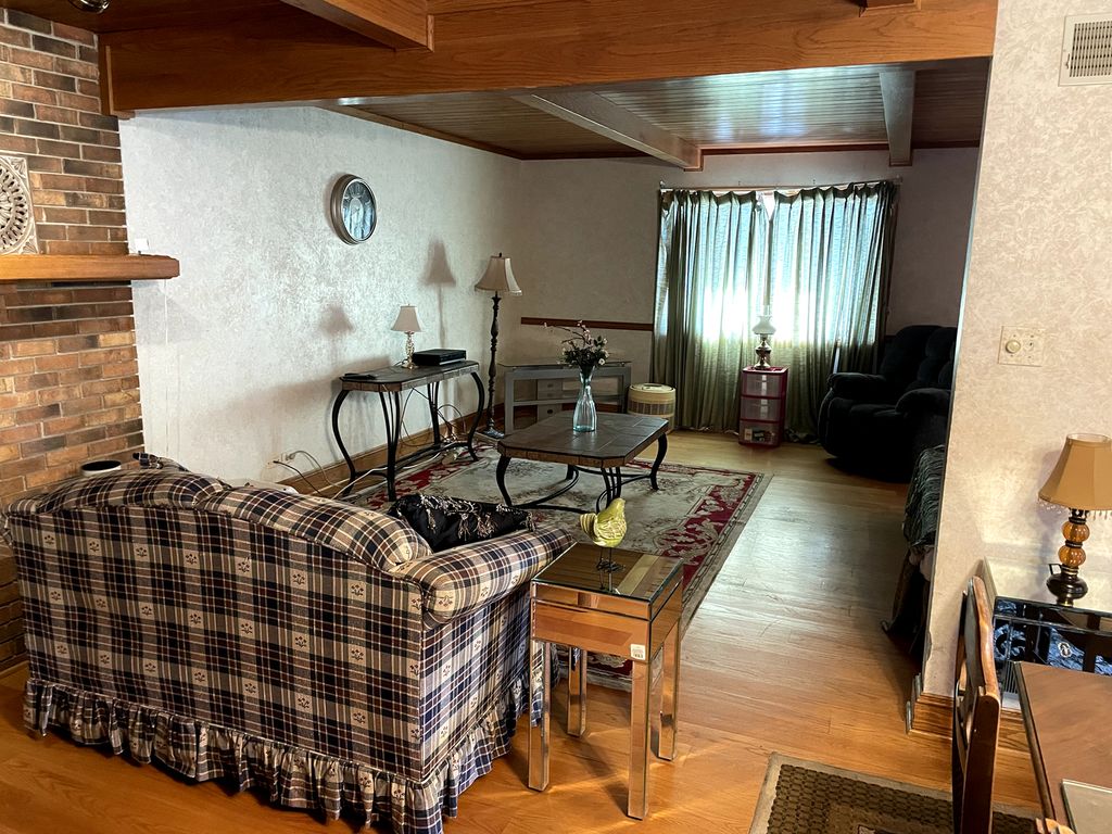 Smitty's Acres brick & cedar 1.5 story home with attached 2.5 car garage located on an over 3 acre lot! Open concept layout with hardwood floors in the entryway, living/family room & dining room. Eat-in kitchen with island, granite countertops, stainless appliances, walk-in pantry & separate dining area with fireplace. French doors to huge sunroom overlooking the deck & massive backyard. Main level laundry room with newer washer/dryer & utility room. Upper level master bedroom with walk-in closet & private bath with whirlpool tub & separate shower. 2 additional carpeted bedrooms & full bath also on upper level. Very large lower level rec room with carpet throughout & wood-burning stove. Additional large utility/storage room located on lower level. Motivated Seller, As-Is sale.