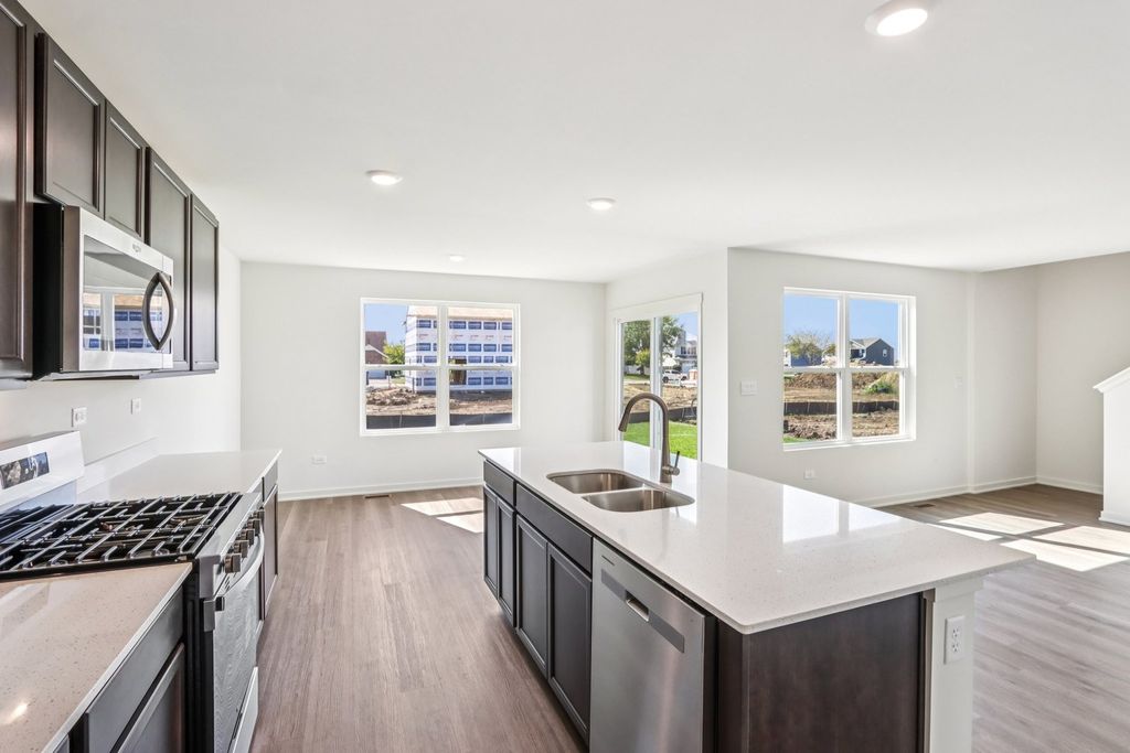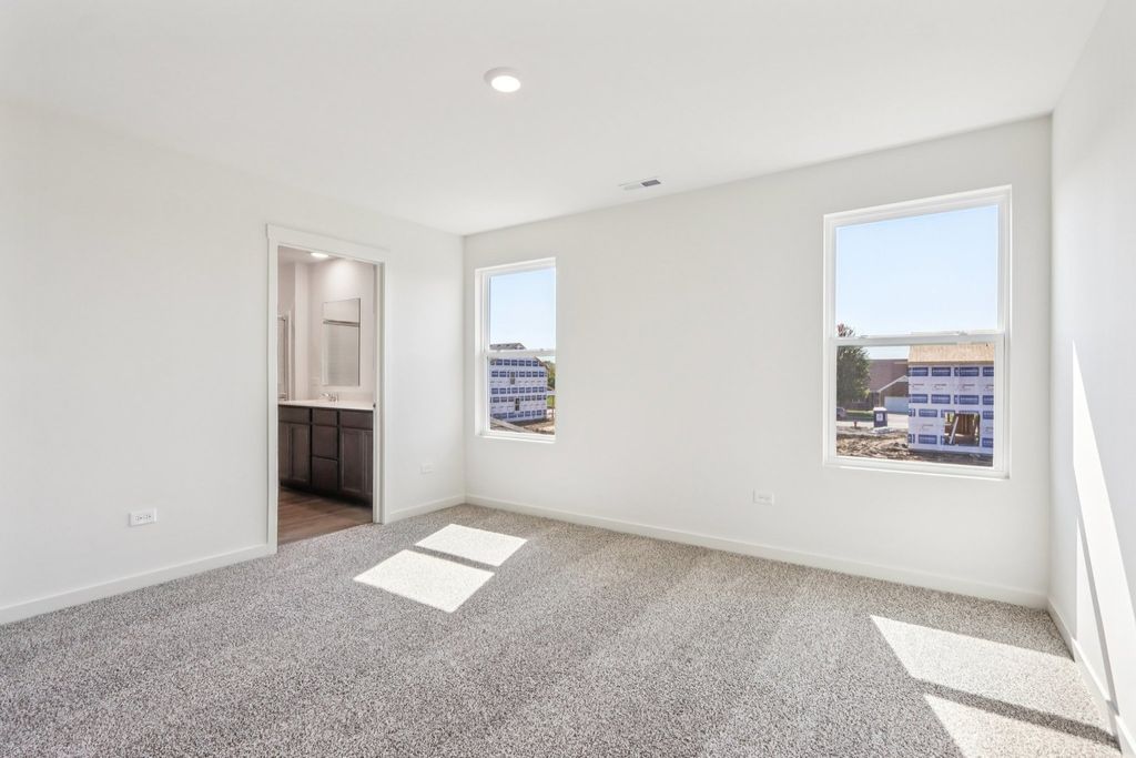 Introducing the Bradley plan, one of our single-family plans at Cedar Creek in Joliet, IL. This home at 3705 Stockton Drive is situated on a spacious home site, providing plenty of room for outdoor enjoyment ready for an immediate move-in! Step inside this 1,663 square foot home with 3 bedrooms, 2.5 baths, a 2-car garage and smart home technology. Entering the foyer, you will first pass the powder-room and then walk into the main level living space. The living area is open concept, with your bump out dining area, a living room, and kitchen blend together seamlessly. The kitchen shows off beautiful cabinetry, a pantry, and an island with ample seating space that looks out to the living room. This layout is great for entertaining family and friends. Upstairs, you'll find a loft which is perfect as a home office or study space! Your primary bedroom features a deluxe bath with ample storage in the walk-in closet, and a dual sink vanity. 2 additional bedrooms with closets, a second bath, linen closet, and a convenient upstairs laundry room complete the rest of the second floor. All Chicago homes include our America's Smart Home Technology, featuring a smart video doorbell, smart Honeywell thermostat, smart door lock, Deako smart light switches and more. Photos are of actual home.