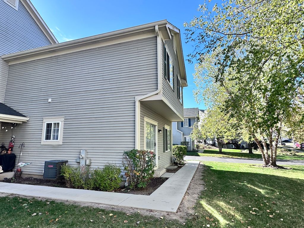 Welcome to this beautifully 3 bedroom, 1.5 bathroom end-unit townhome offering exceptional space, style, and comfort. The main level features a spacious living room with 9-foot ceilings, real hardwood floors, a gas fireplace, and open views of a picturesque courtyard. The formal dining room flows seamlessly into the updated kitchen, which boasts ample counter space, stainless steel appliances, and hardwood flooring. Sliding glass doors lead to the yard-perfect for relaxing or entertaining. Upstairs, you'll find three generous bedrooms, each with excellent closet space. The primary bedroom offers access to a shared full bath, creating a convenient and comfortable retreat. The fully finished basement provides a versatile family or recreation room, featuring recessed lighting, a large laundry area, and abundant storage. Nestled in a private cul-de-sac, this home is ideally located near top-rated schools, shopping, parks, and bike trails. Don't miss this incredible opportunity-schedule your showing today!