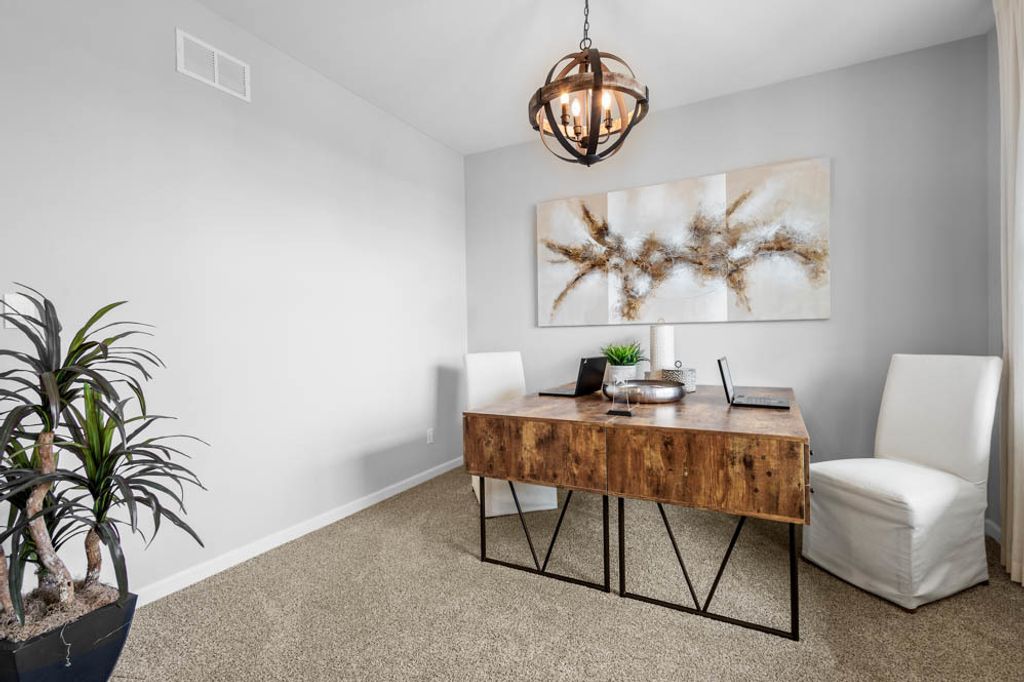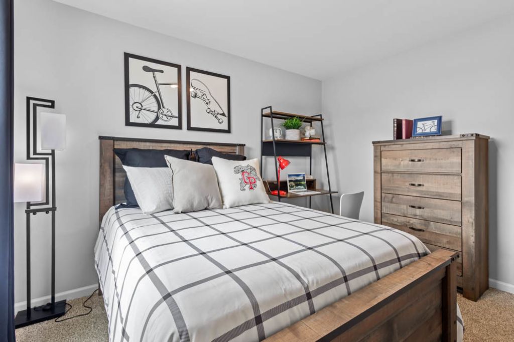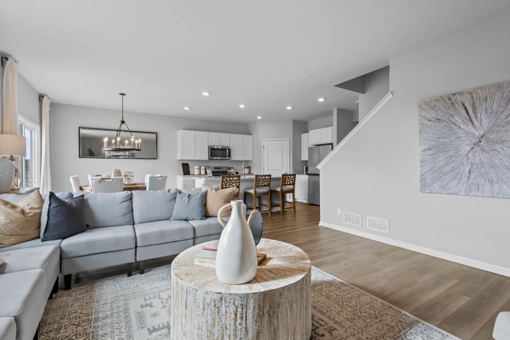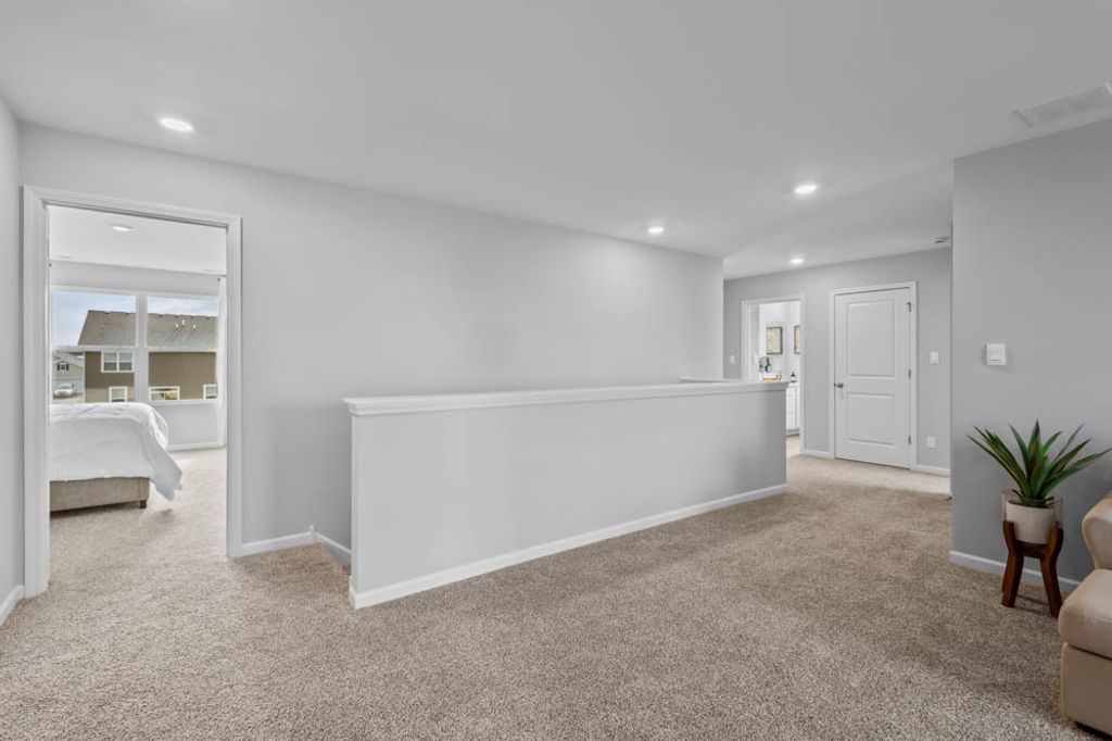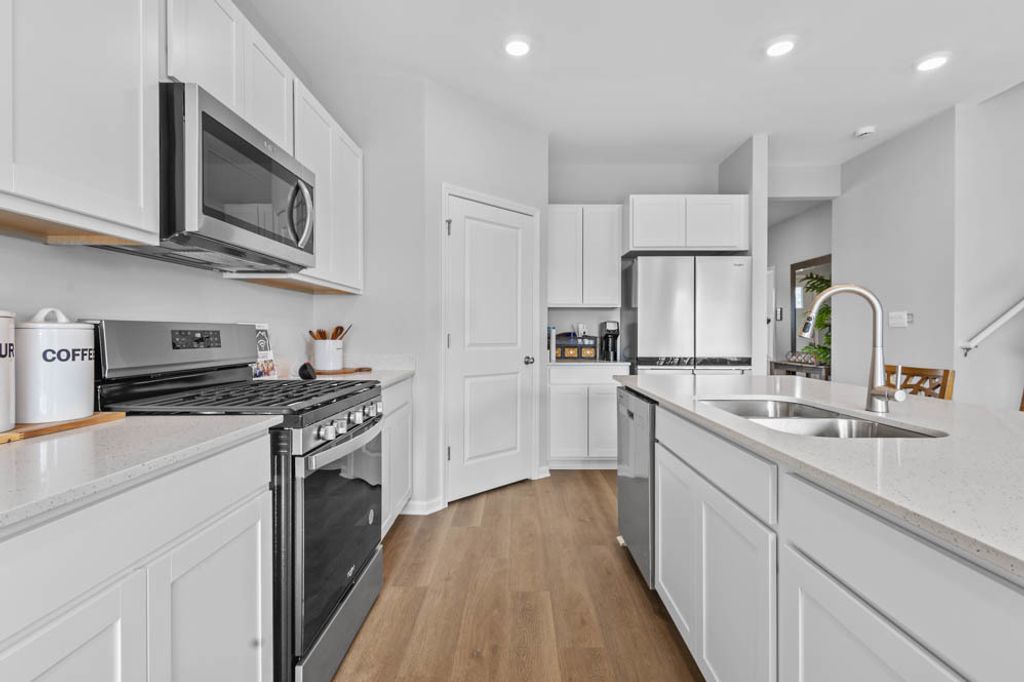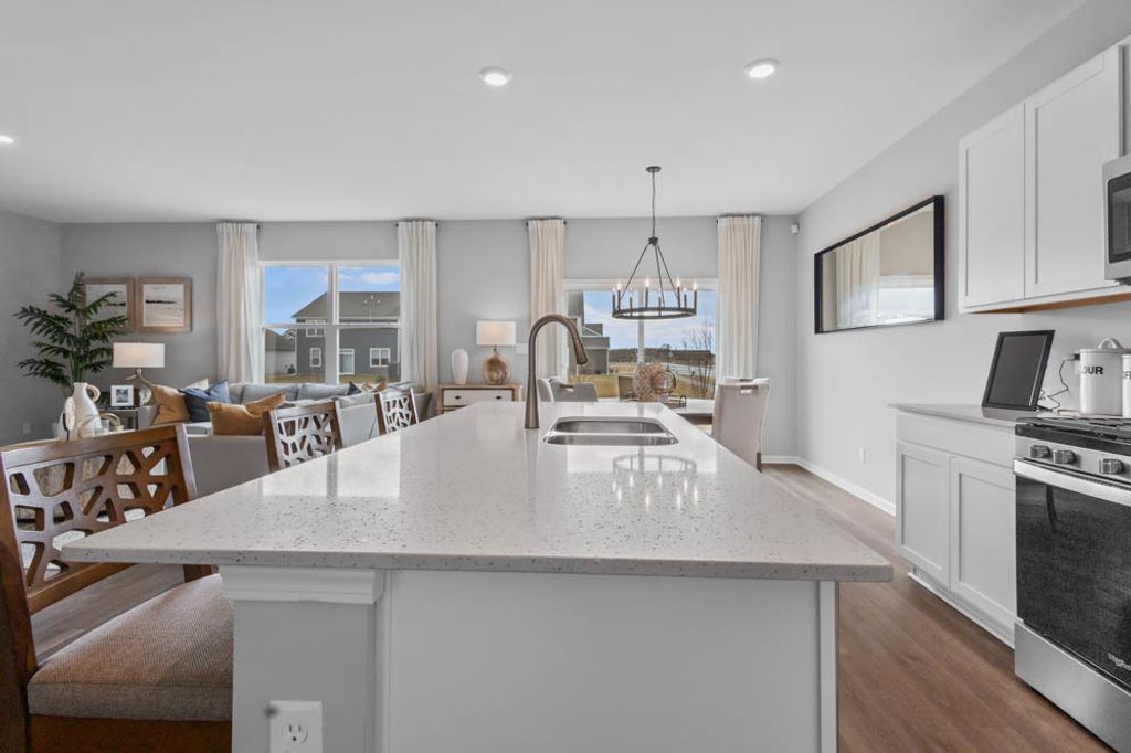 Imagine yourself at 1451 Aspen Lane in Pingree Grove, Illinois, a beautiful new home in our Cambridge Lakes North community. This home is ready for a quick move-in! Homesite includes a fully sodded yard and a full front porch with no rear neighbors! This Henley plan offers 2,600 square feet of living space with a flex room, 4 bedrooms, 2.5 baths, and a 2-car garage. Entertaining will be easy in this open-concept kitchen and family room layout with a large island with an overhang for stools with designer cabinetry. Additionally, the kitchen features a walk-in pantry, modern stainless-steel appliances, quartz countertops, and easy-to-maintain luxury vinyl plank flooring. More flexible space is waiting upstairs in the 2nd-floor loft, offering unlimited potential to suit your needs. Enjoy your private getaway with your large primary bedroom and en suite bathroom with a raised height dual sink, quartz top vanity, and walk-in shower. Convenient walk-in laundry room, 3 additional bedrooms with a full second bath and a linen closet complete the second floor. All Chicago homes include our America's Smart Home Technology. Exterior photo of actual home. Interior photos are of similar home and model home. Actual home built may vary.